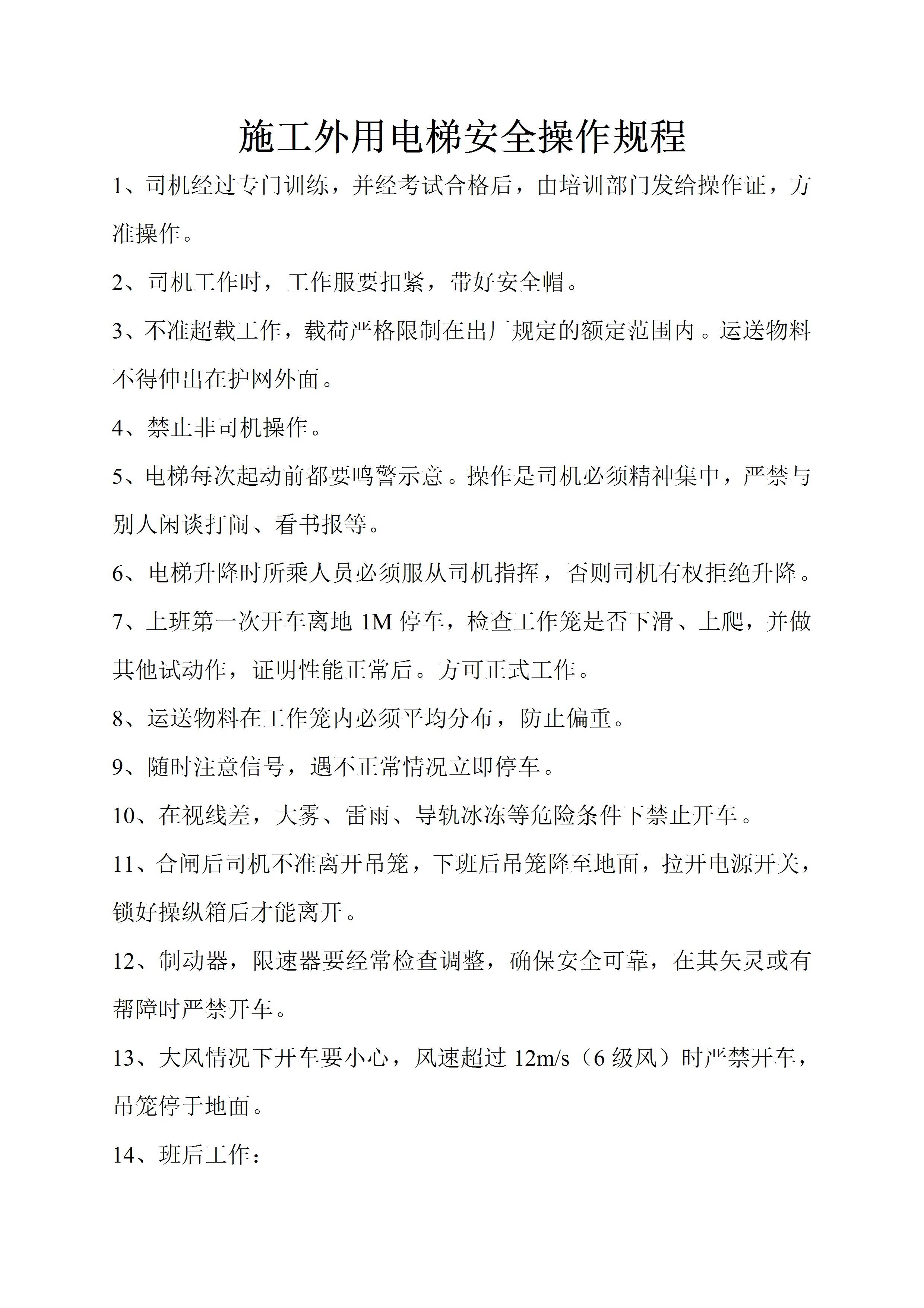 施工外用电梯安全操作规程