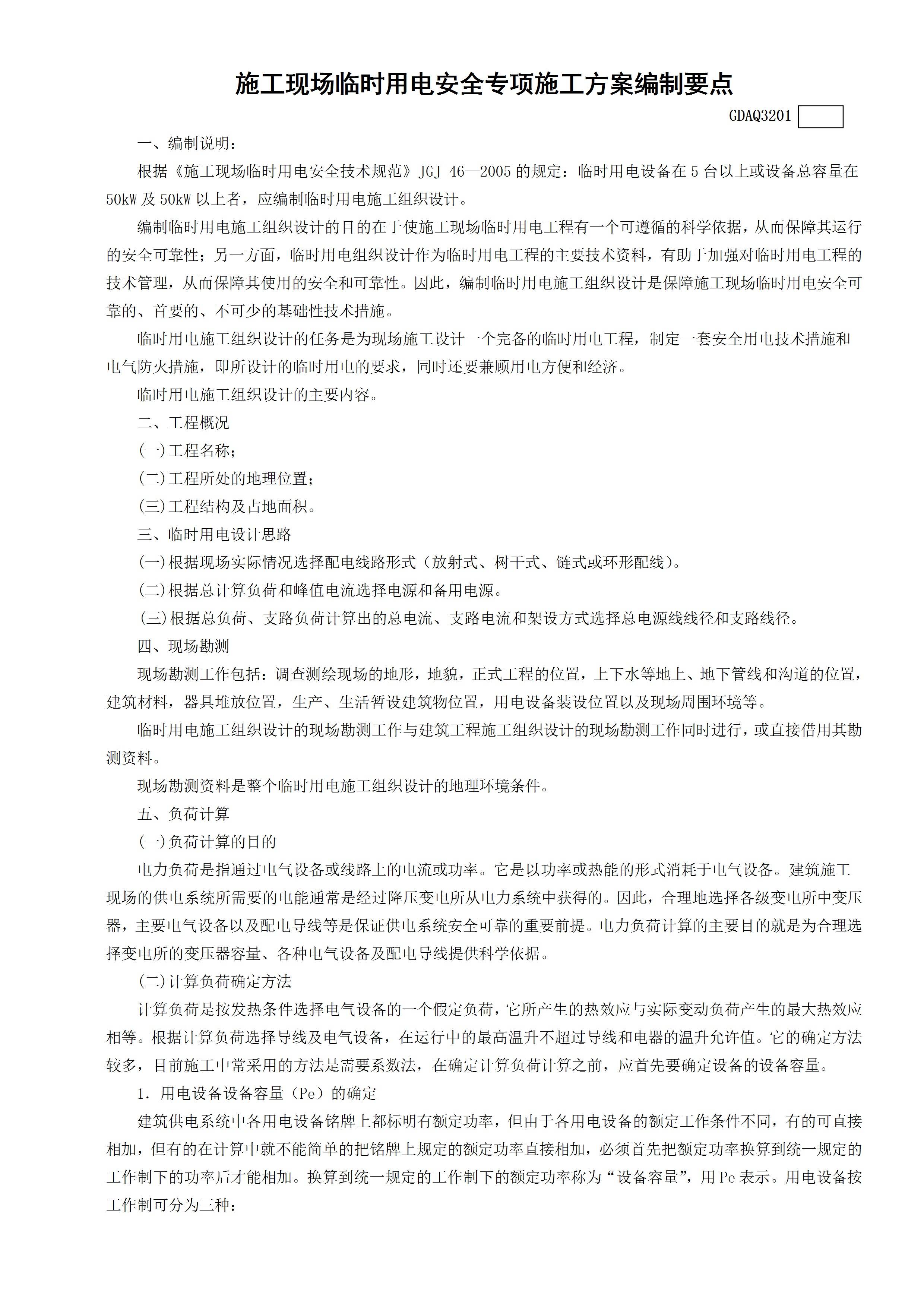 / 施工现场临时用电安全专项施工方案编制要点GDAQ3201