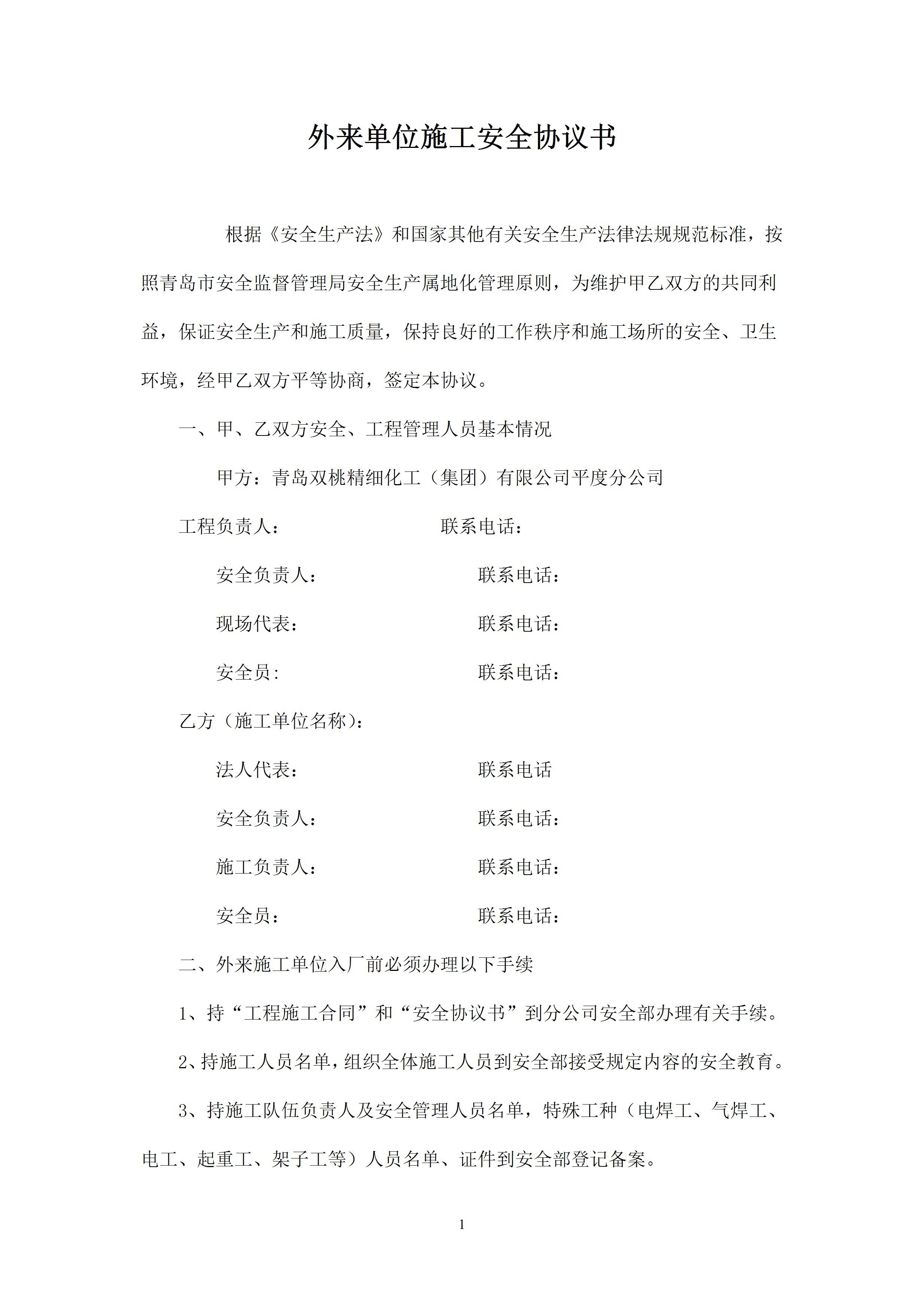 / 外来单位施工安全协议书