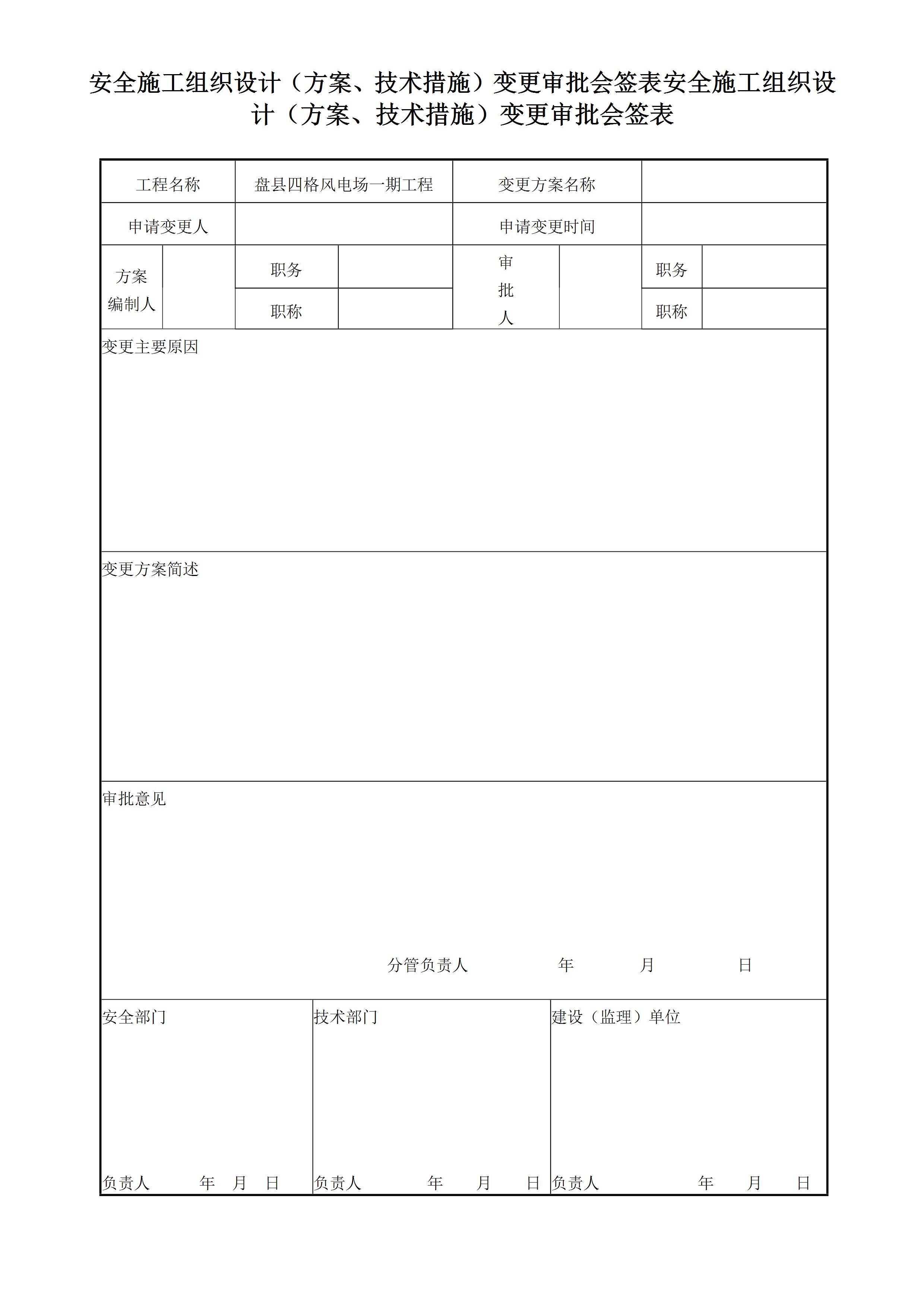 / 四格安全施工组织设计(方案、技术措施)变更审批会签表
