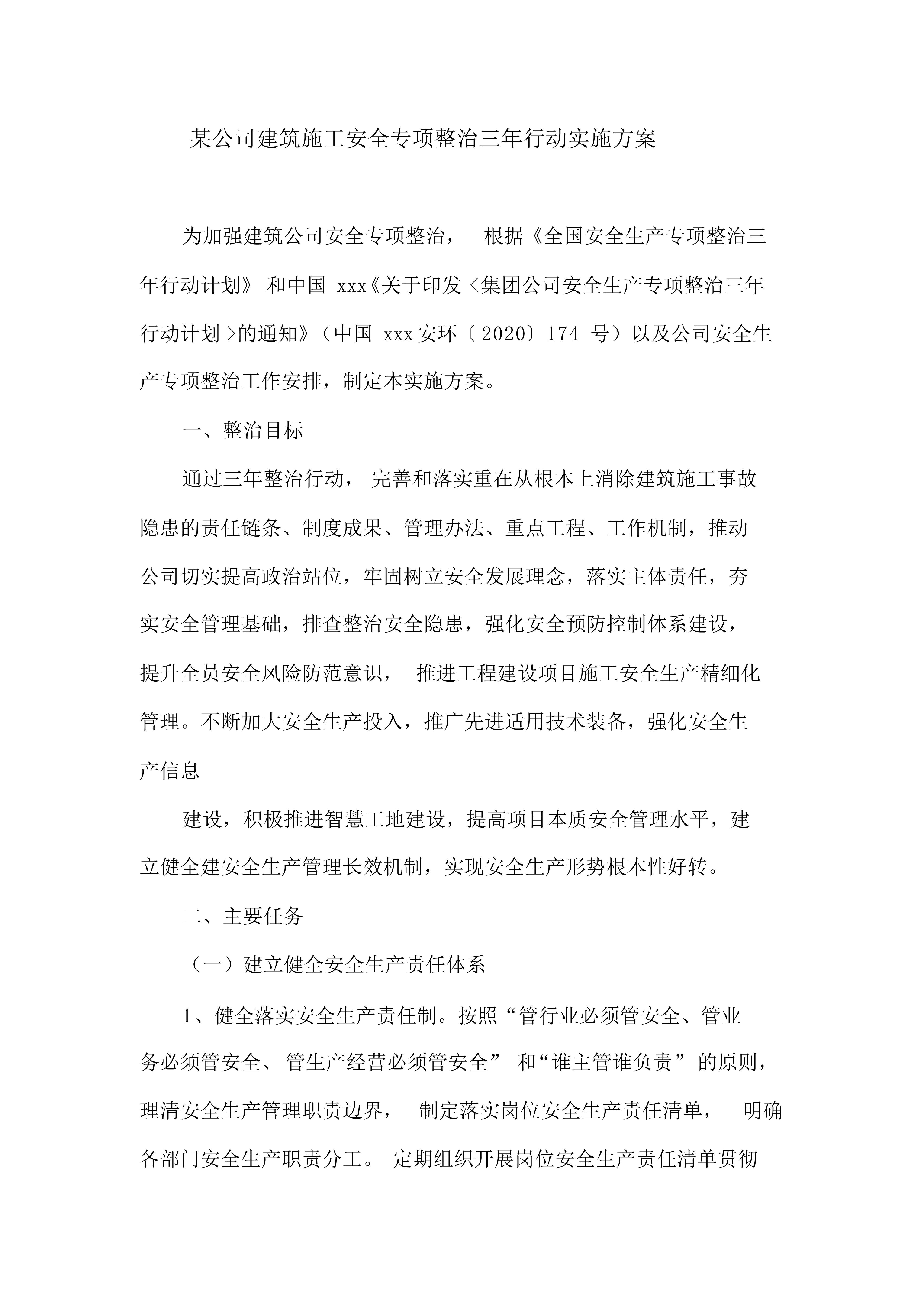 / XX建筑公司施工安全专项整治三年行动实施方案