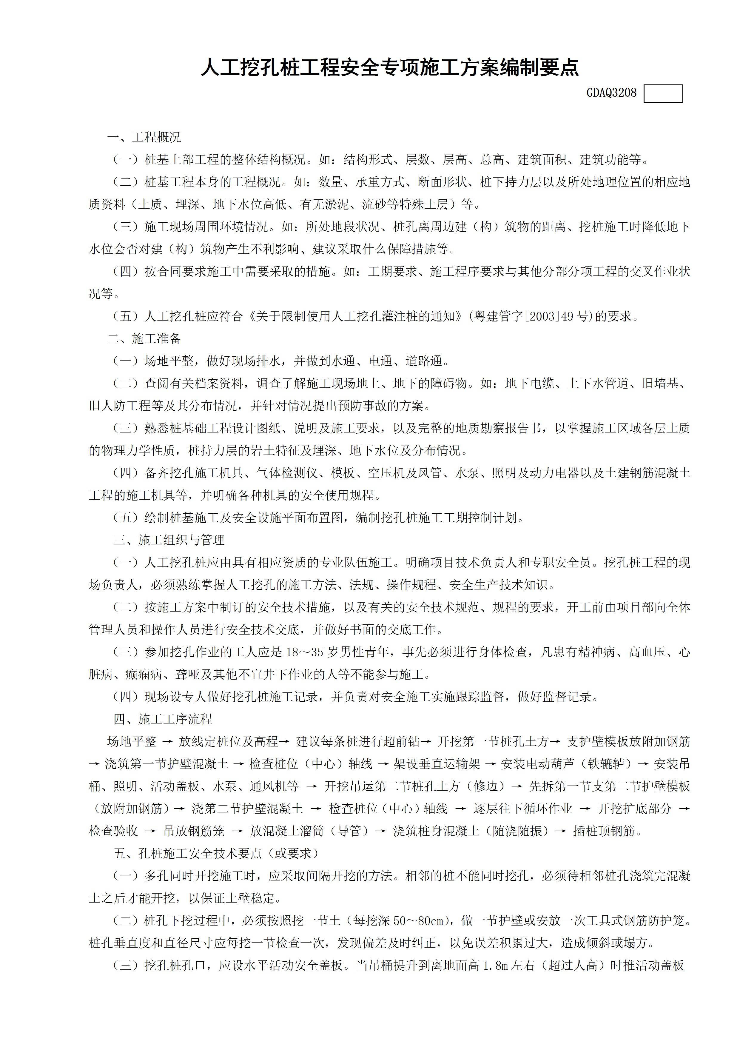 / 人工挖孔桩工程安全专项施工方案编制要点GDAQ3208