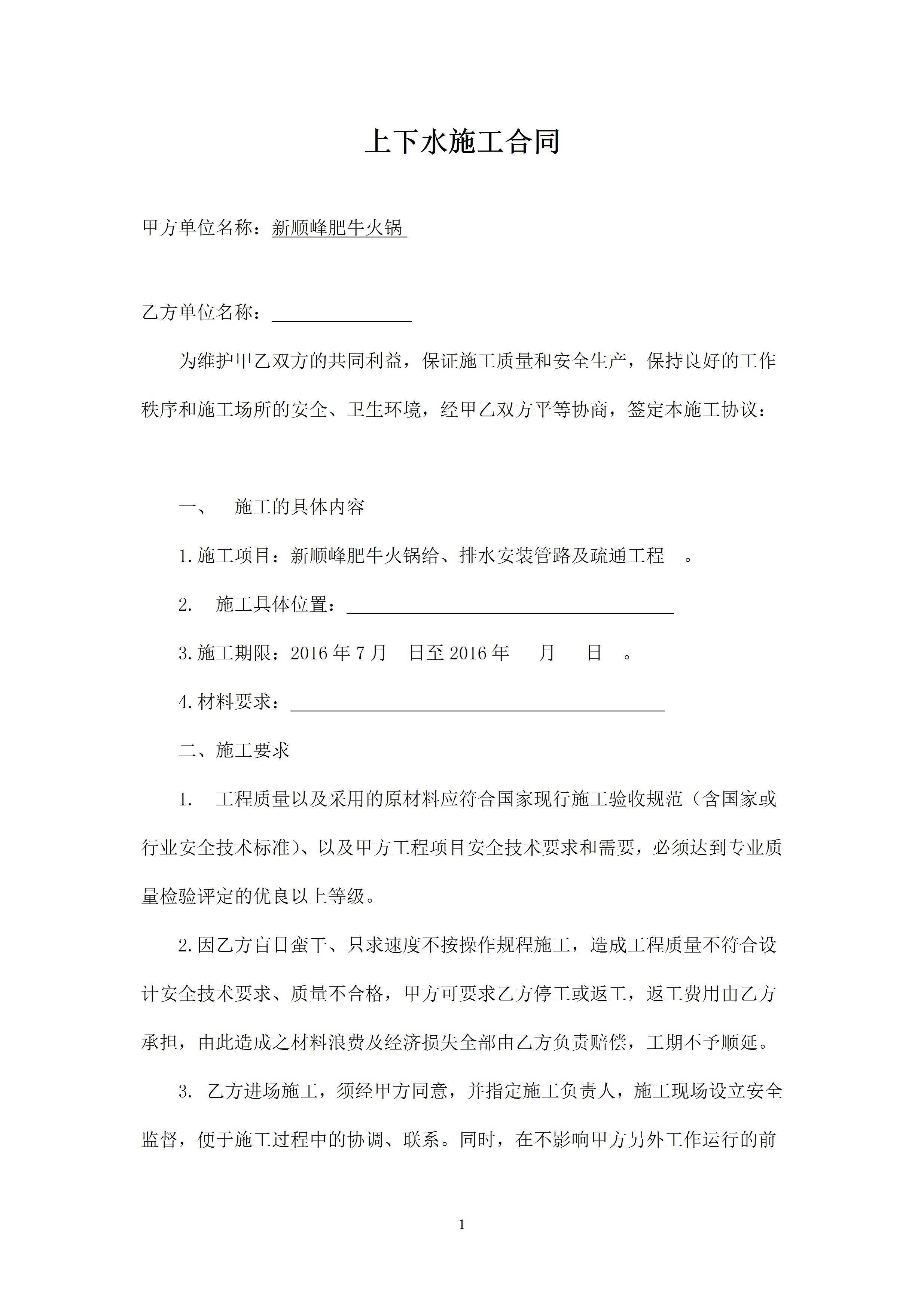 上下水施工安全合同