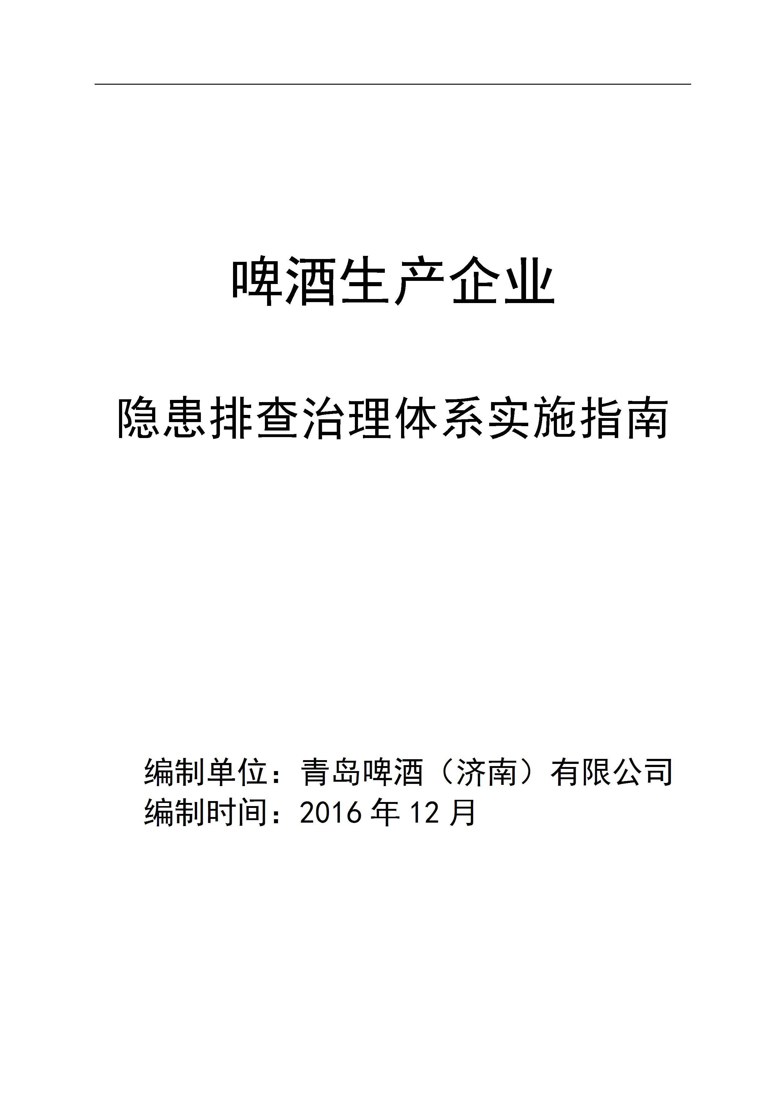 / 啤酒生产企业隐患排查治理体系实施指南