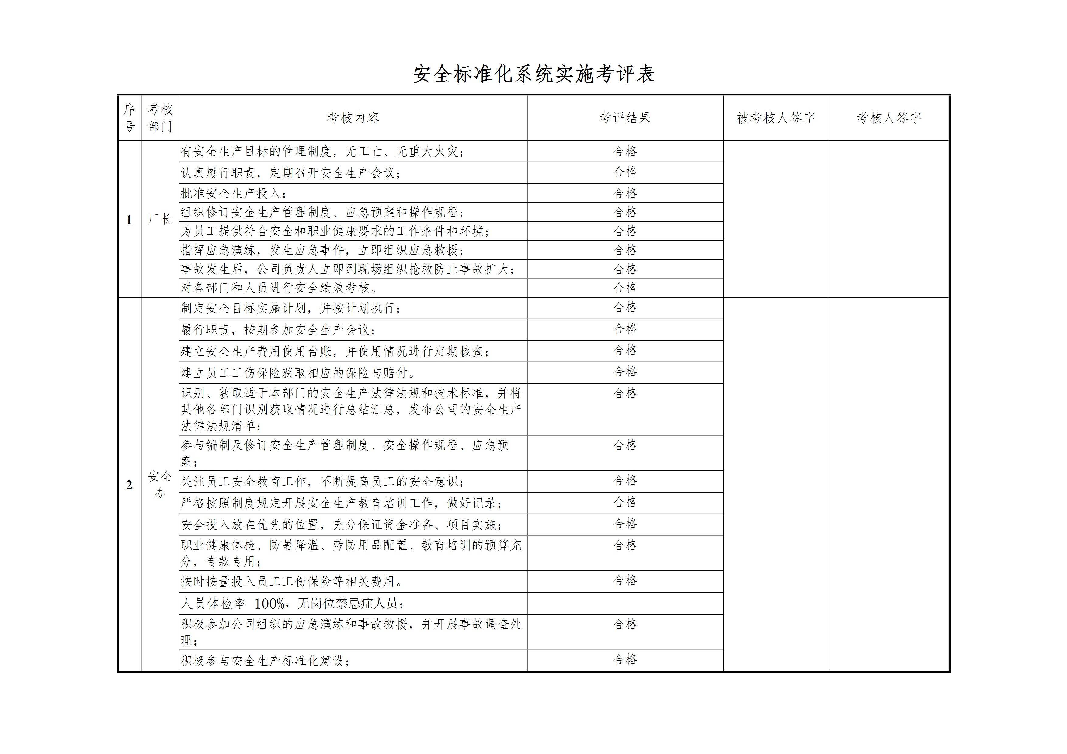 安全标准化系统实施考评表