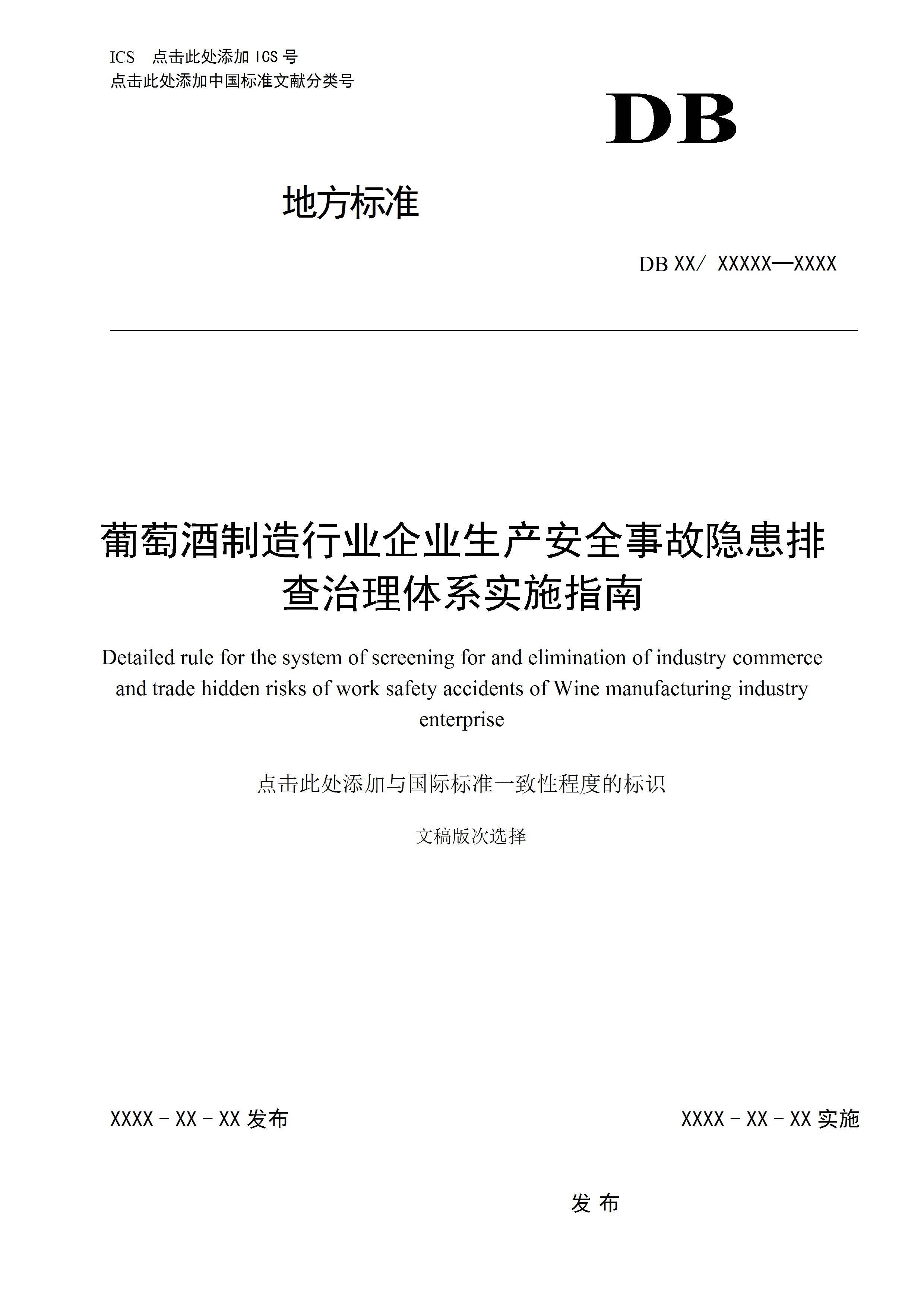 / 葡萄酒制造行业企业生产安全事故隐患排查治理体系实施指南