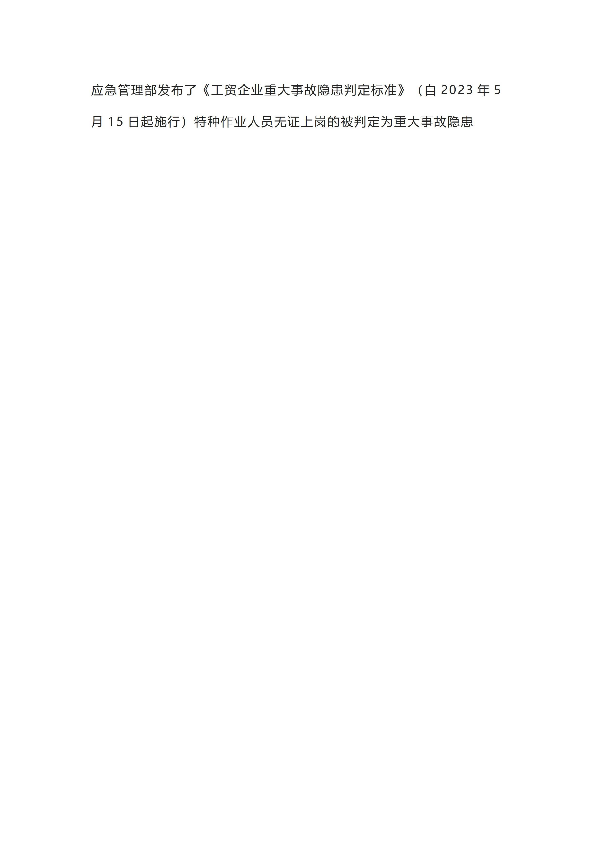 / 特种作业人员未持证上岗判定为重大事故隐患 5月15日实施