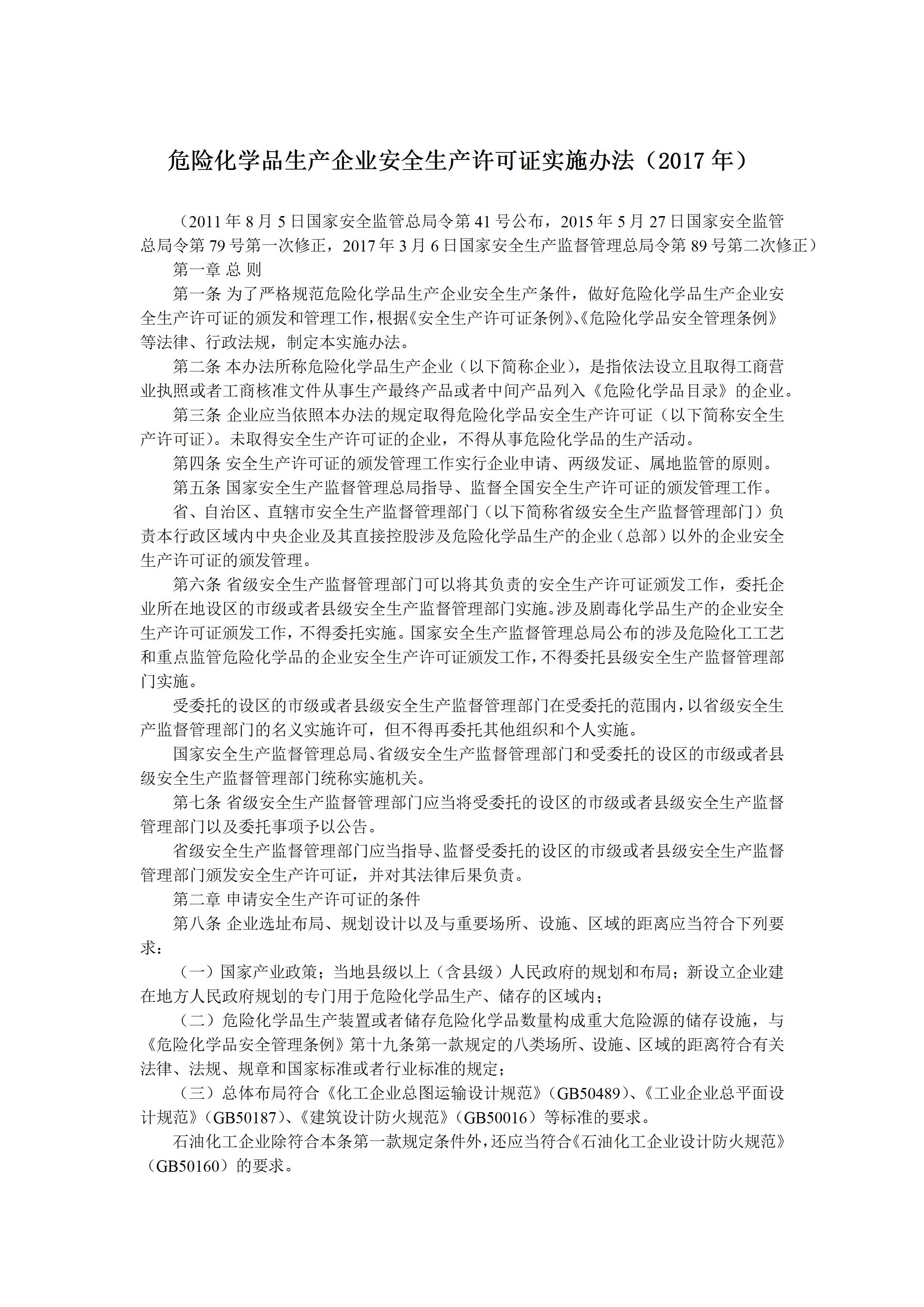 / 危险化学品生产企业安全生产许可证实施办法(2017年)