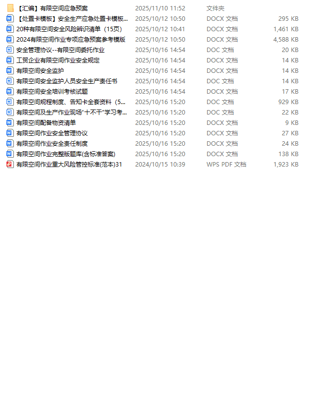 有限空间作业安全制度 应急预案 考试试题 作业监护 全套文件[ZIP]