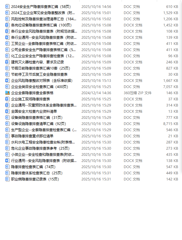 / 各类隐患排查及安全检查表格清单附带标准依据[ZIP]