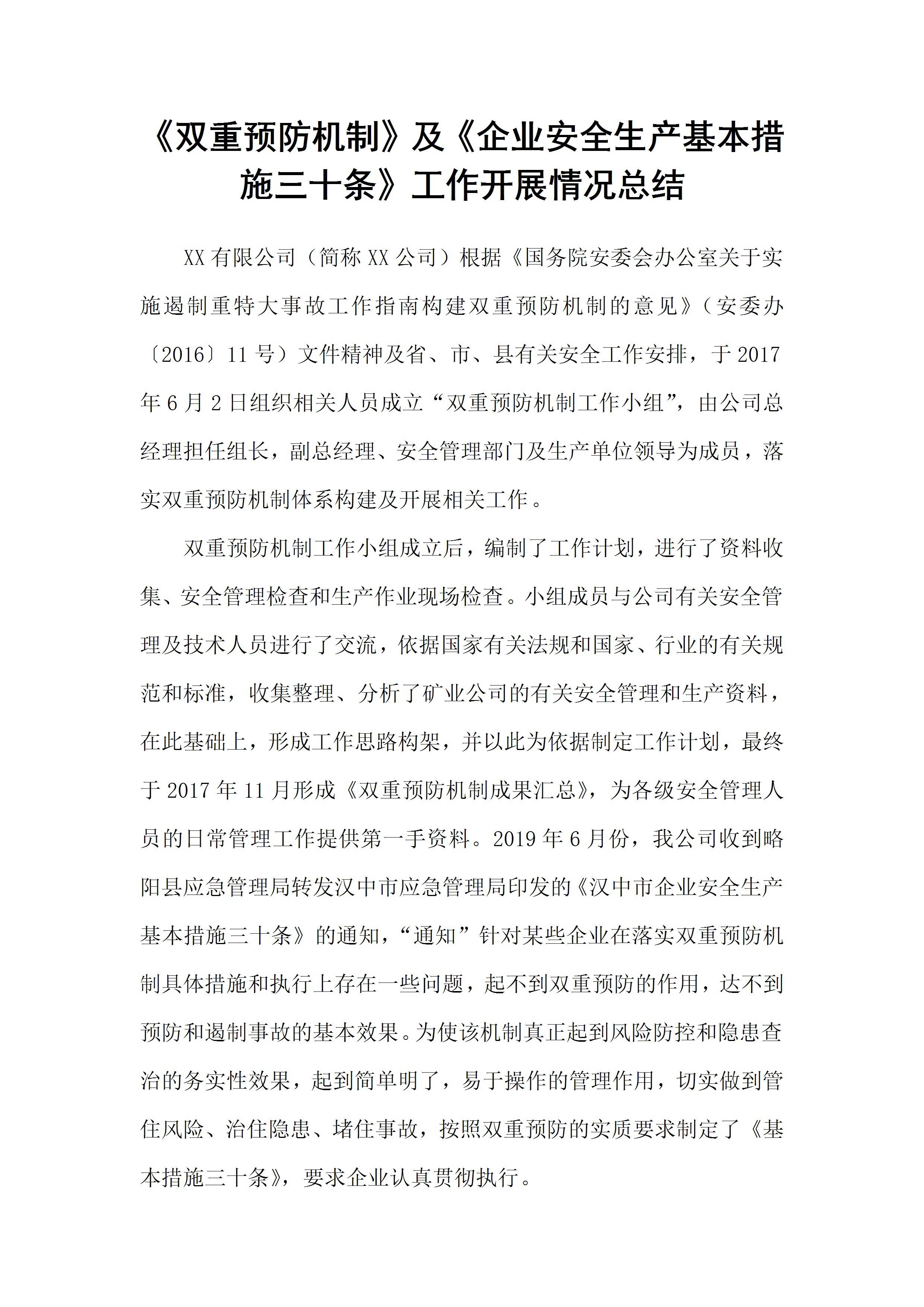 / 【总结】XX公司双重预防机制及安全生产三十条工作总结(10页)