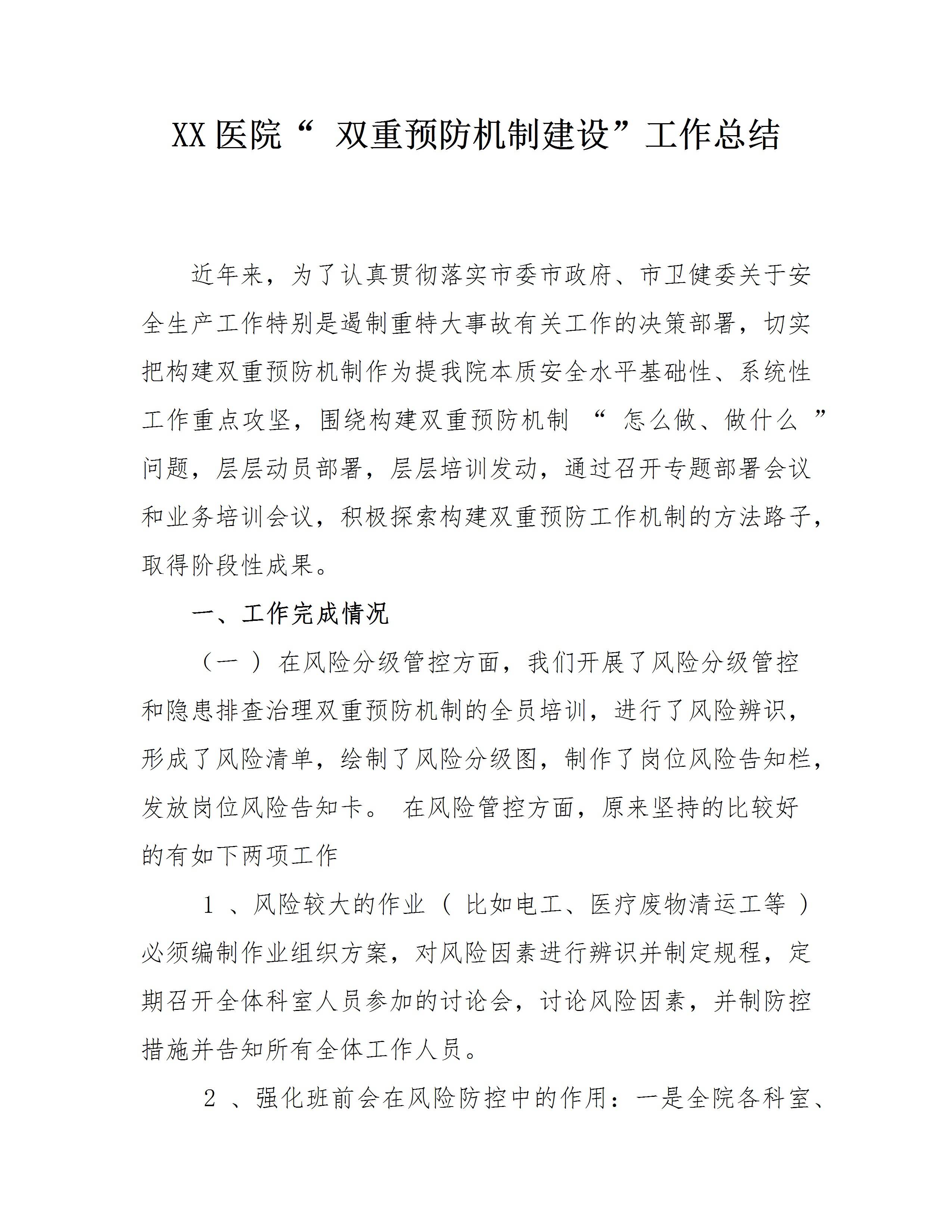 【总结】XX医院“ 双重预防机制建设”工作总结