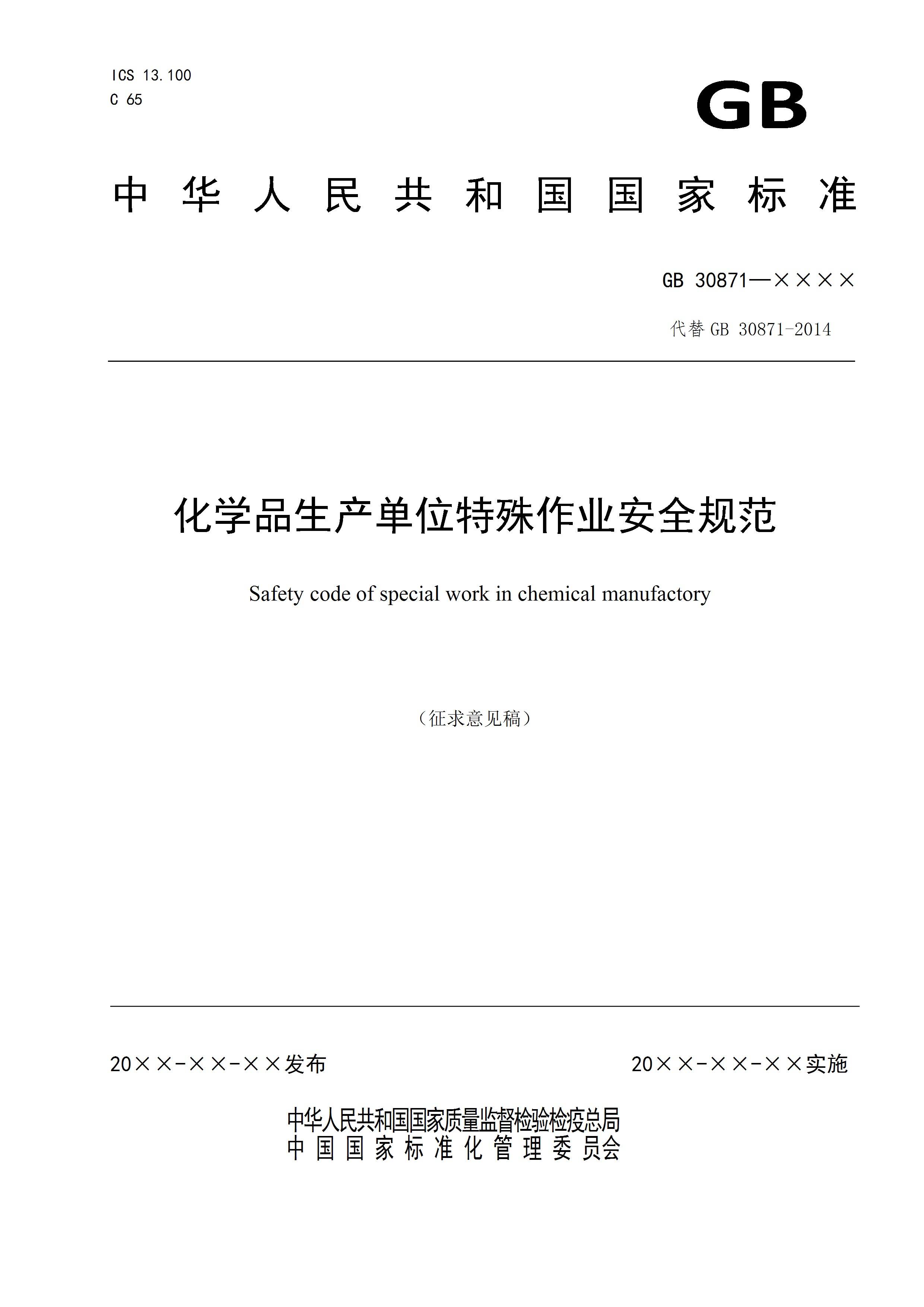 / 化学品生产单位特殊作业安全规范(征求意见稿)