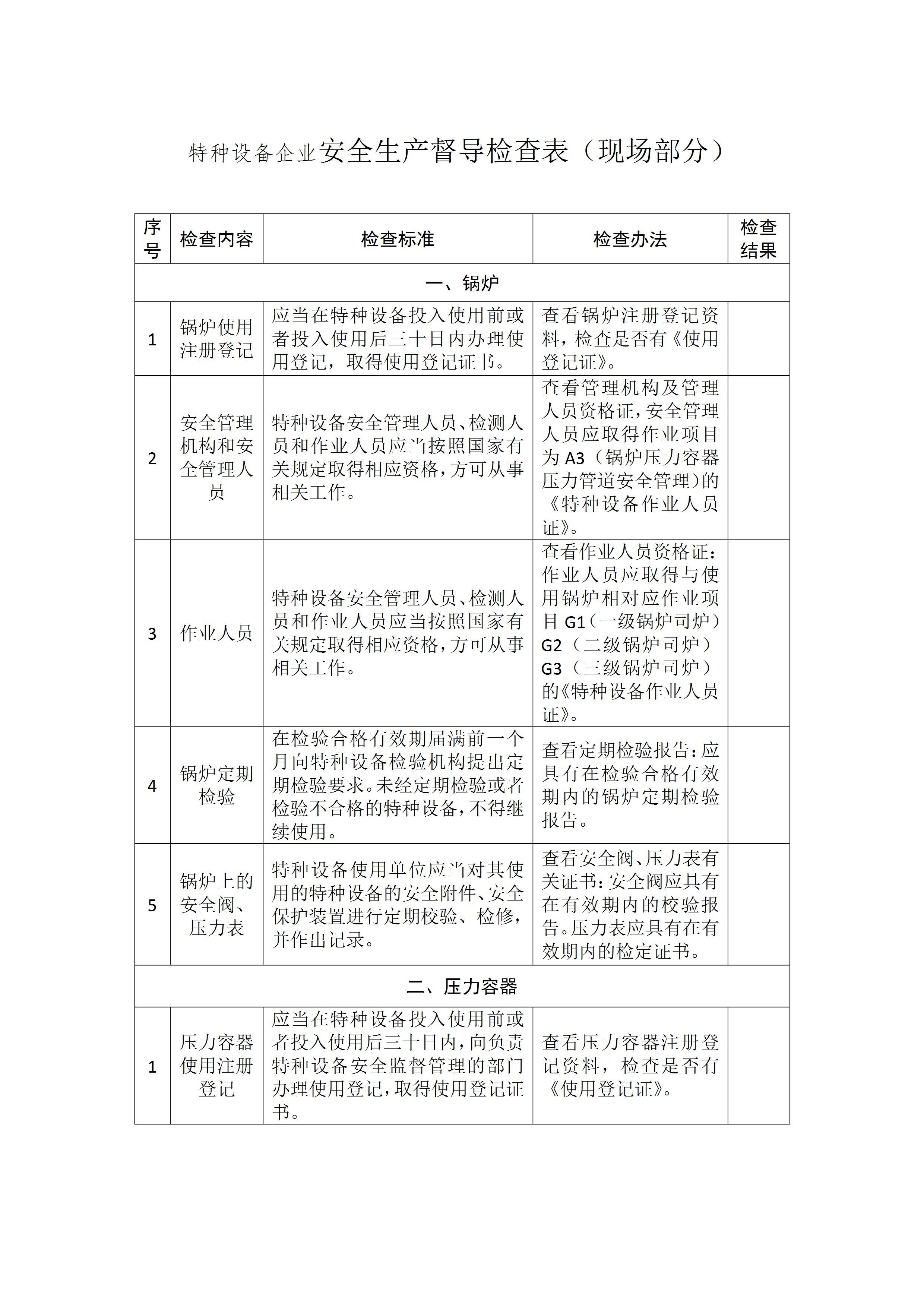 特种设备企业安全生产督导检查表