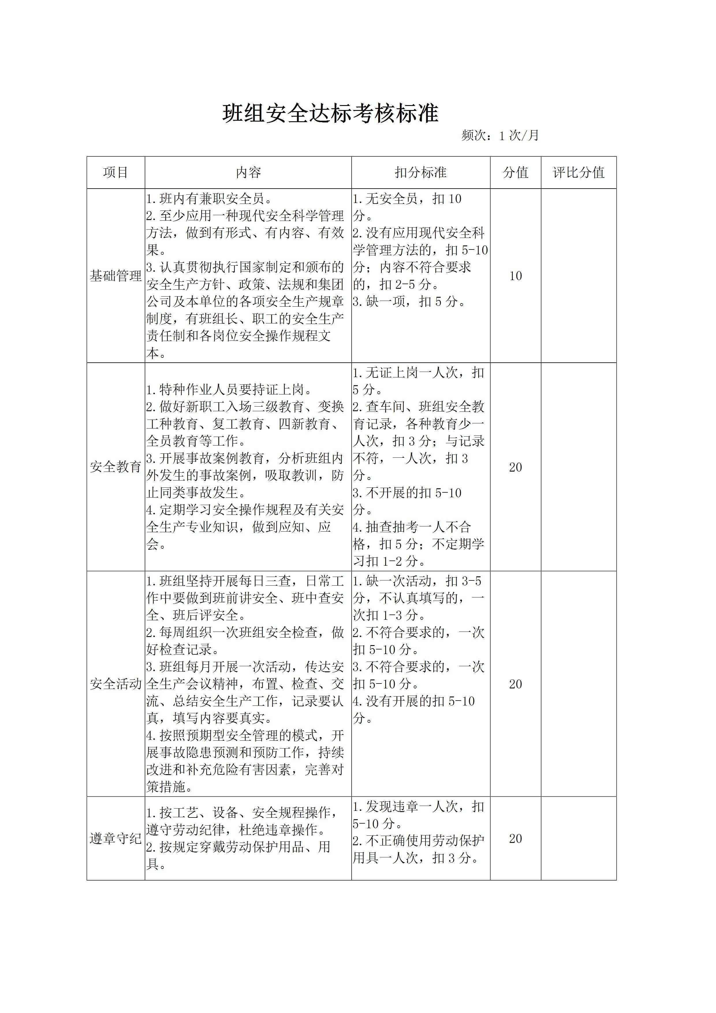 班组安全达标考核标准表[文档]