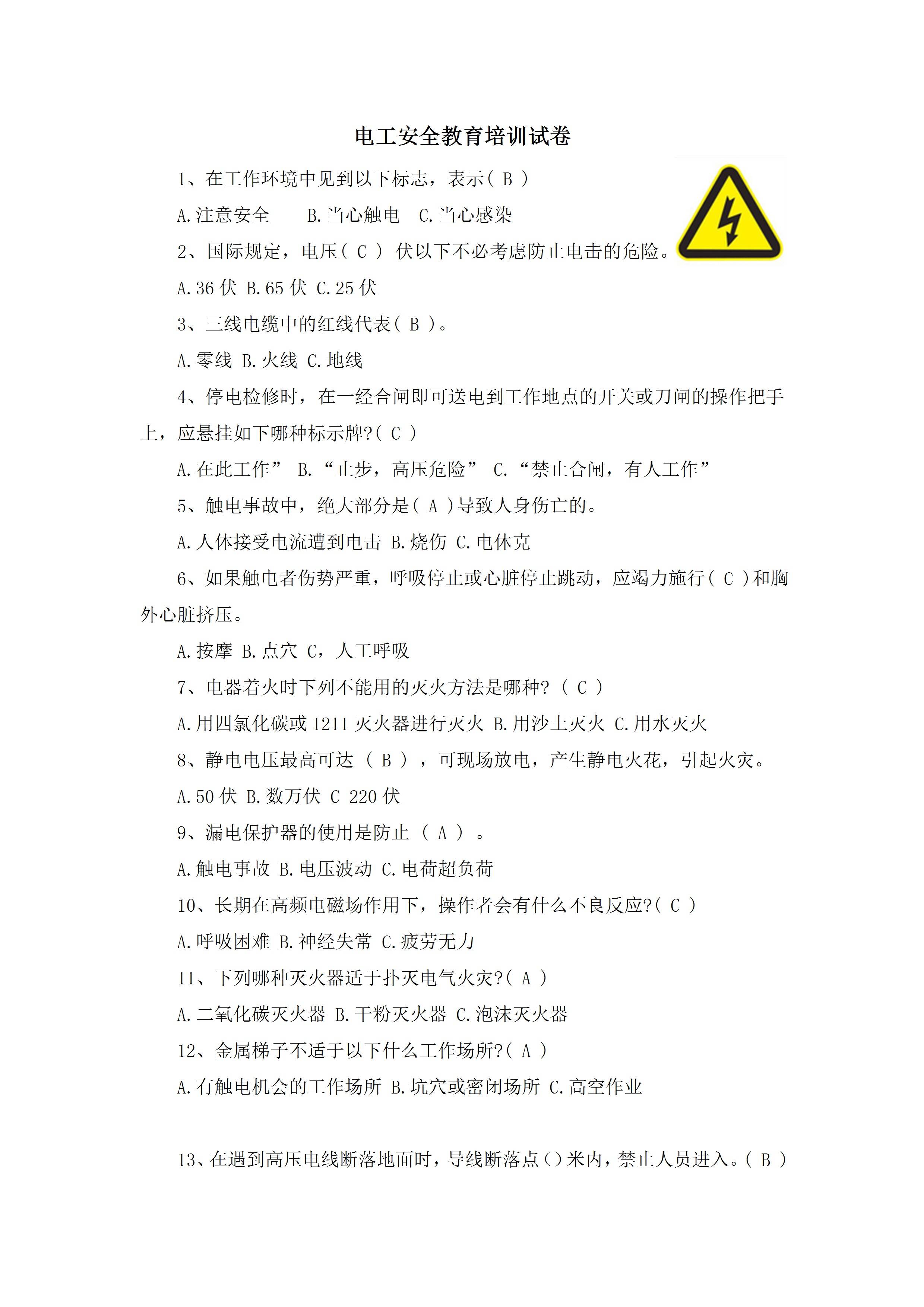 电工安全教育培训试卷[文档]