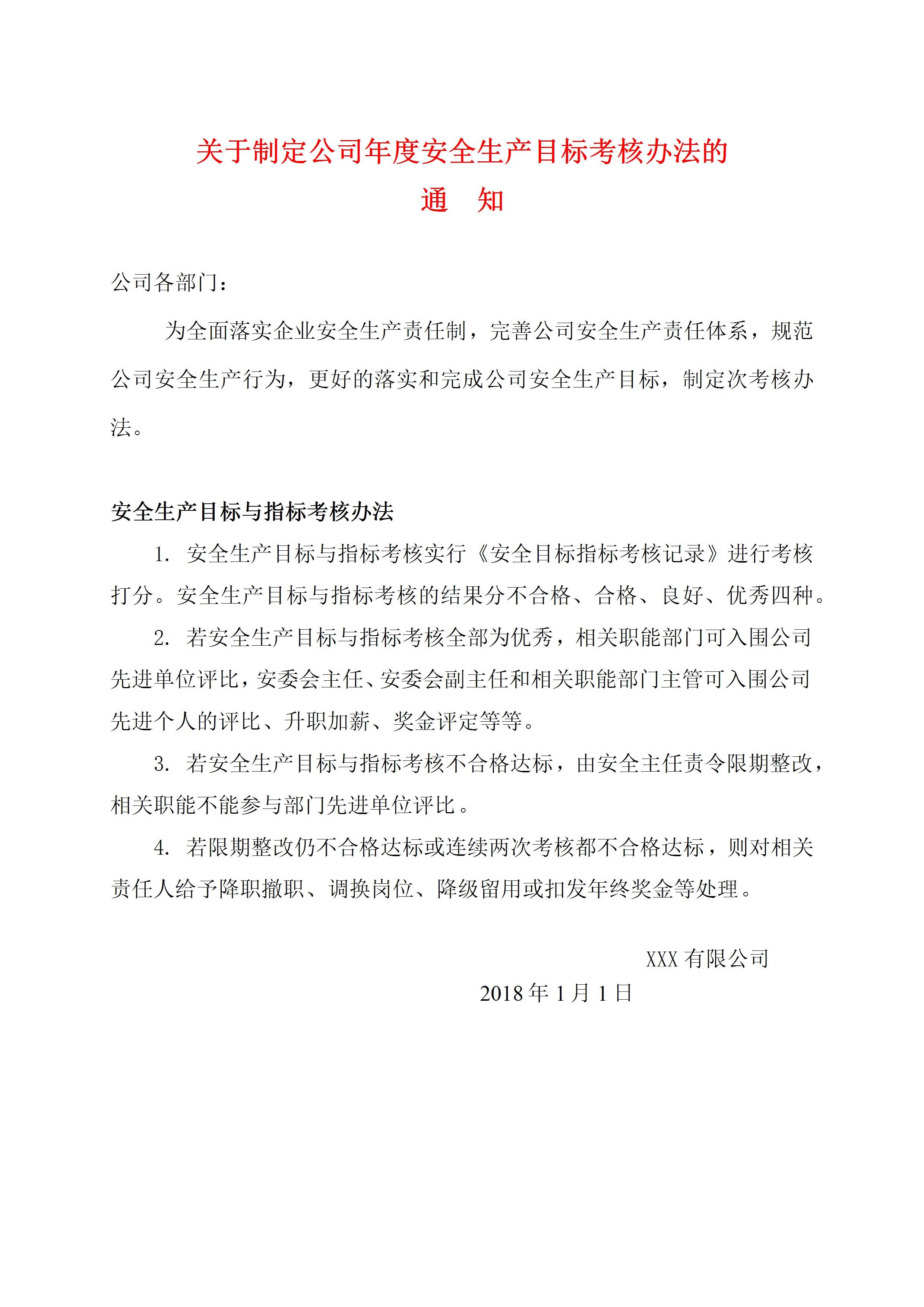 / 关于制定公司年度安全生产目标考核办法的通知[文档]