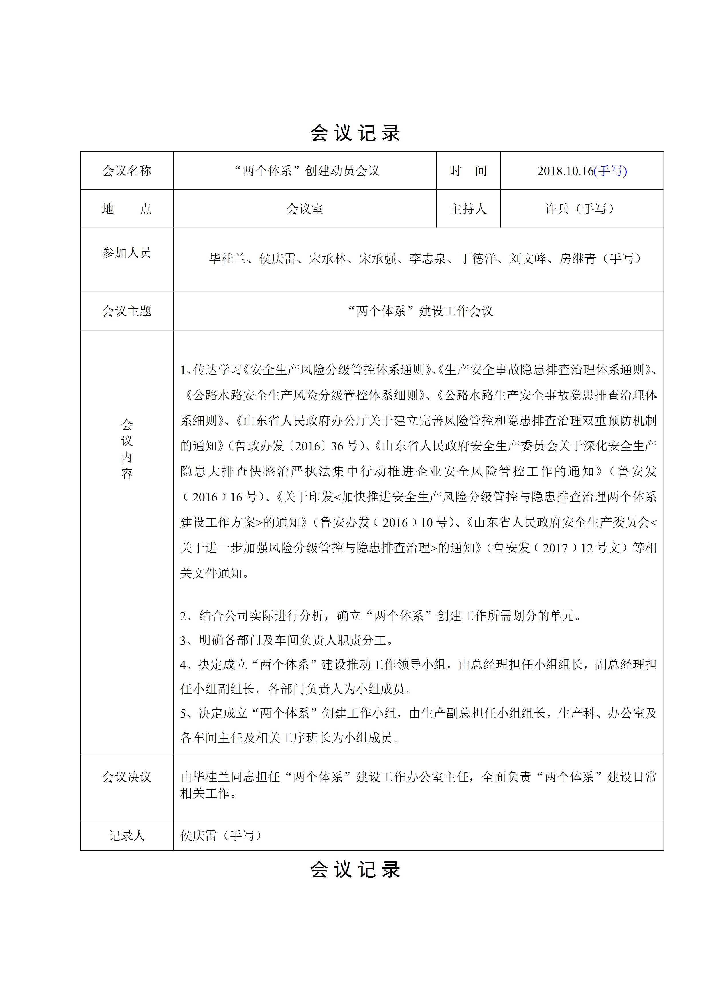 企业全套安全工作会议例会记录模板[ZIP]
