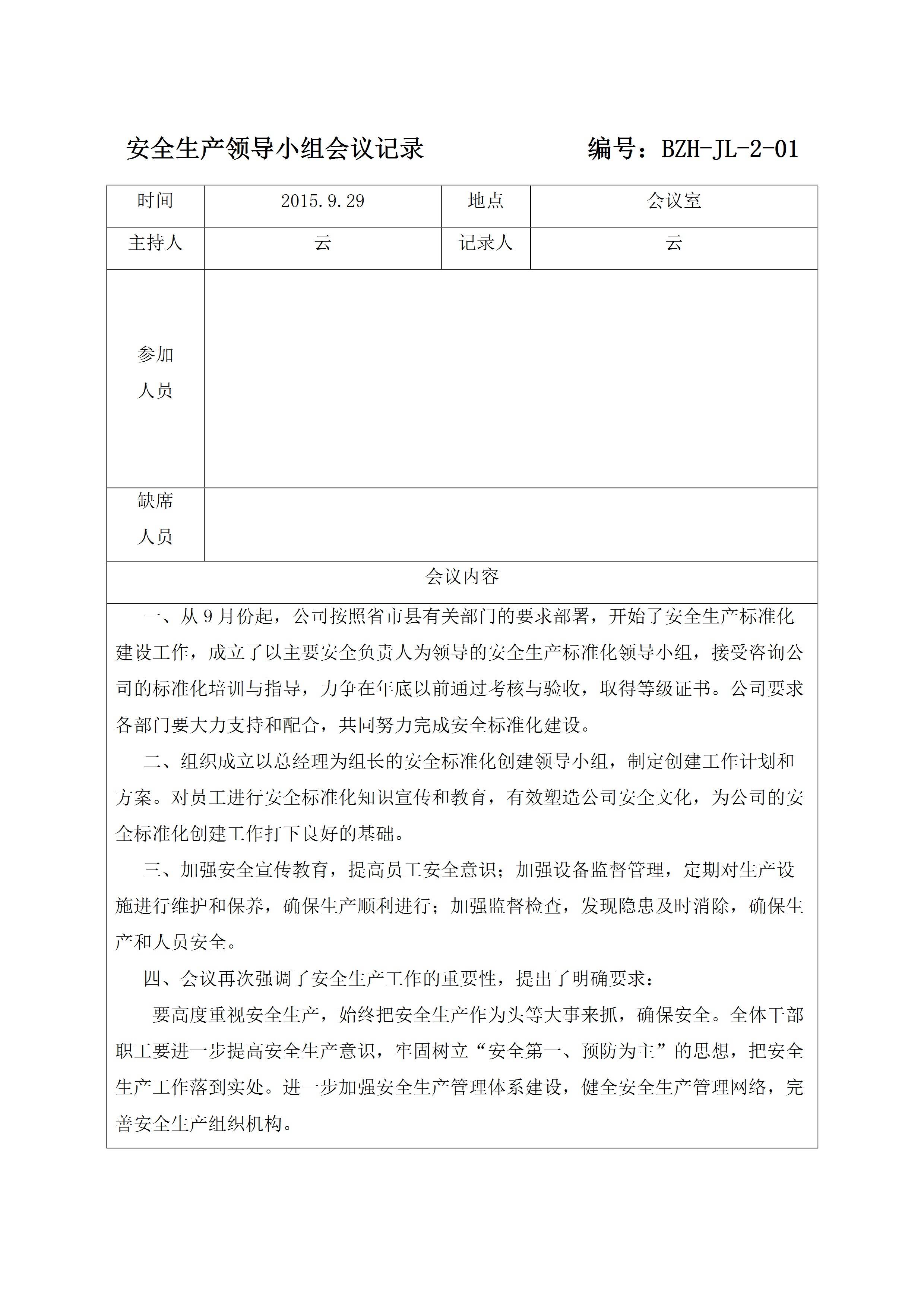 企业全套安全工作会议例会记录模板[ZIP]