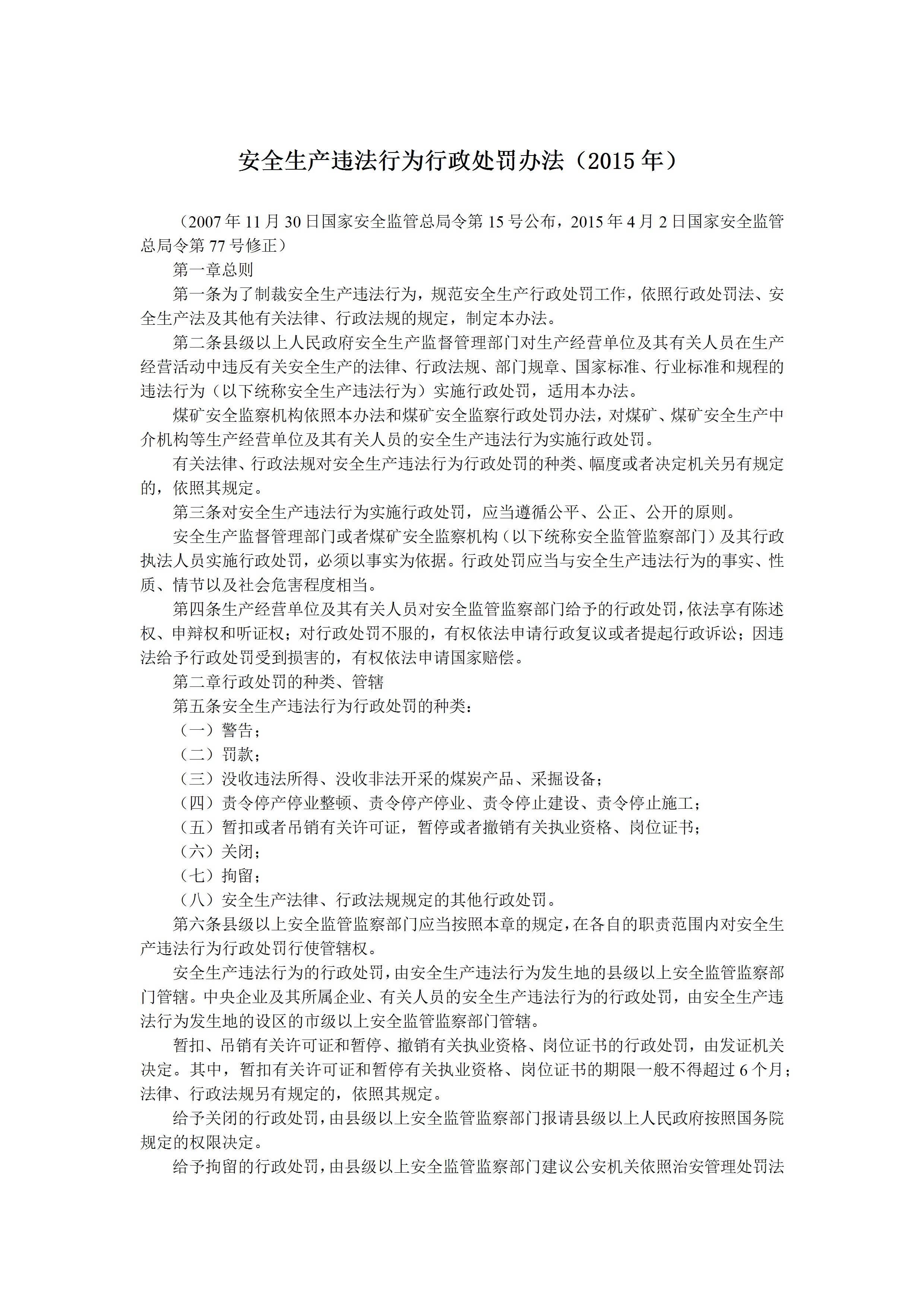 / 安全生产违法行为行政处罚办法2015年[文档]