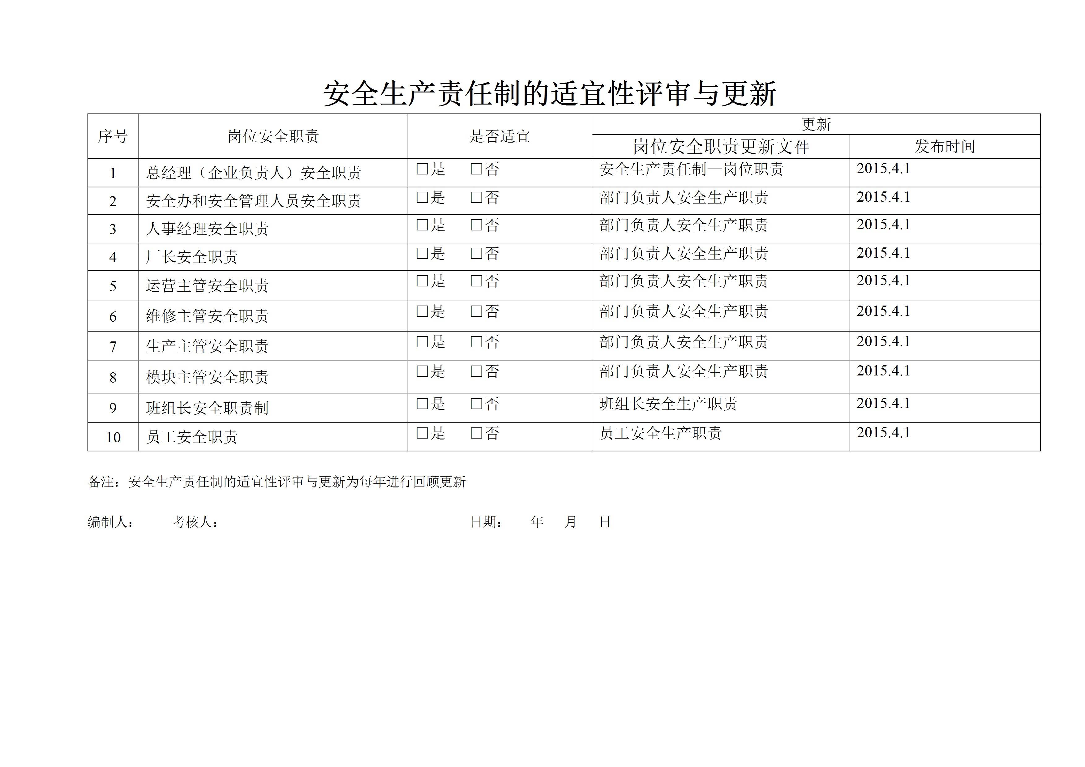 / 安全生产责任制的适宜性评审与更新[文档]