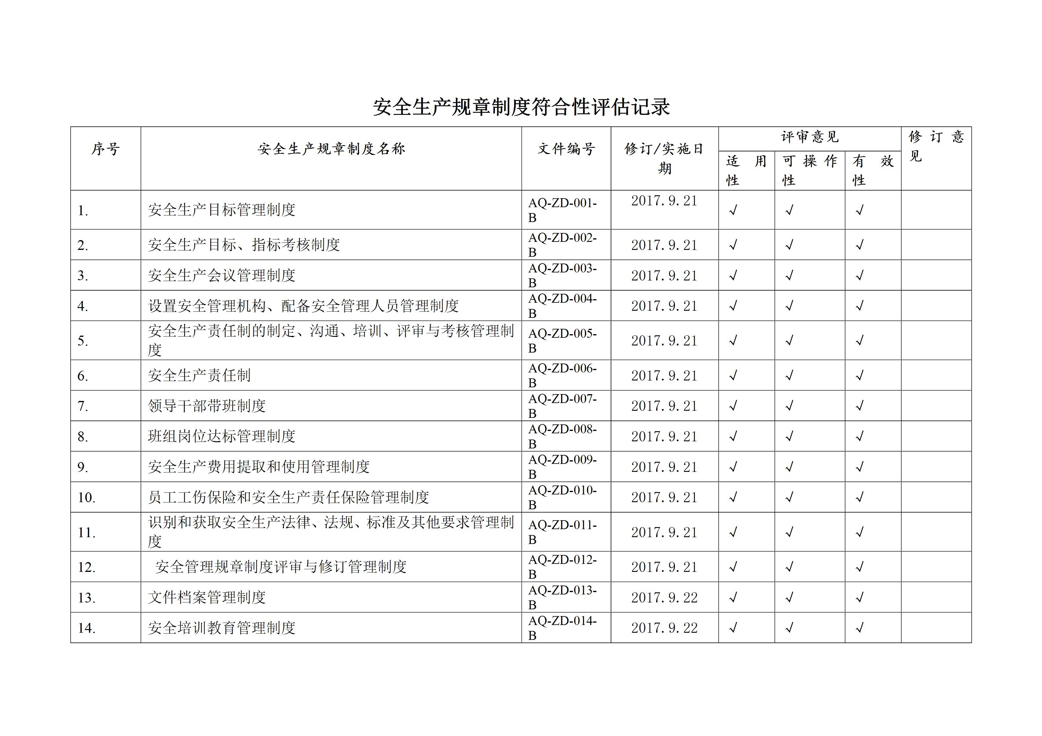 / 安全生产规章制度符合性评估修订记录[文档]