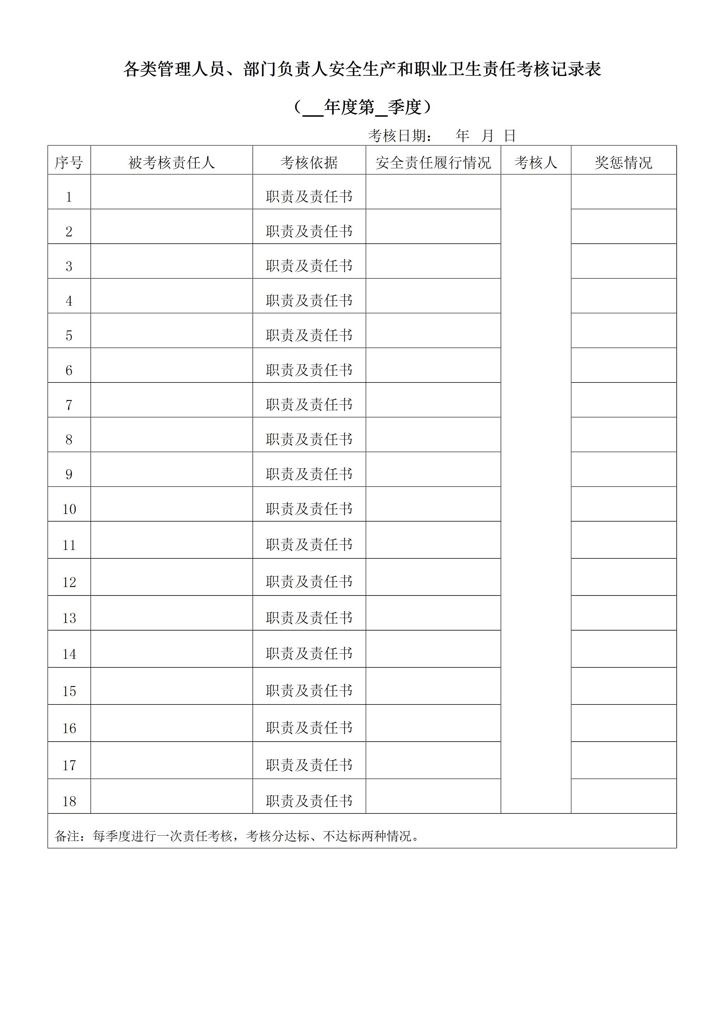 / 安全生产和职业卫生责任考核记录表[文档]