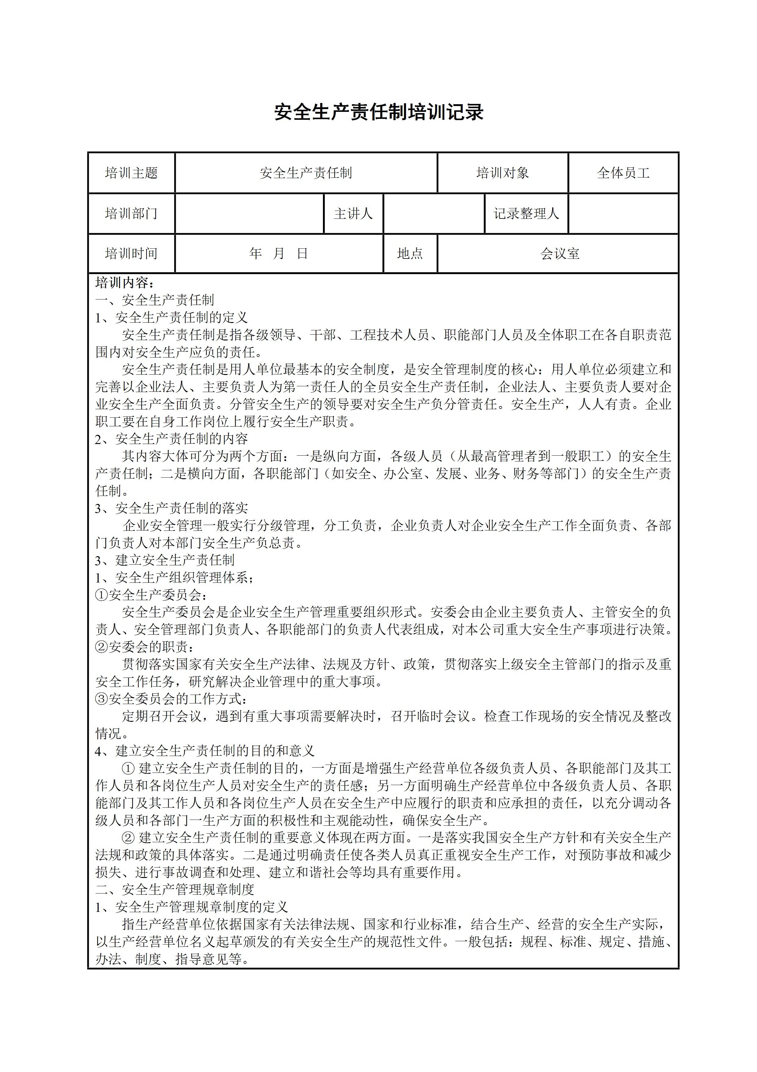 / 安全生产和职业卫生责任制培训记录[文档]