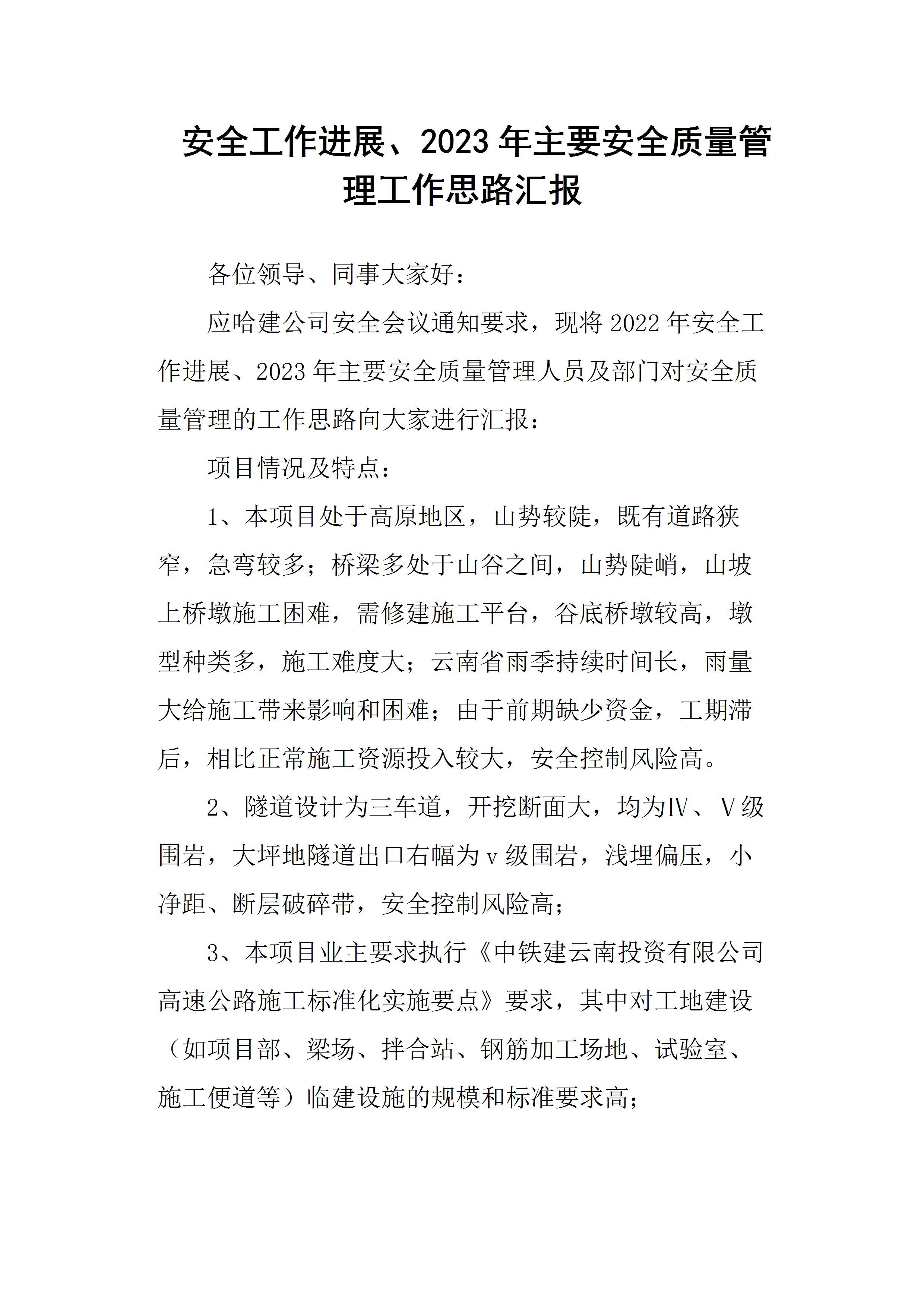 / 项目部安全质量工作思路汇报23页[文档版]