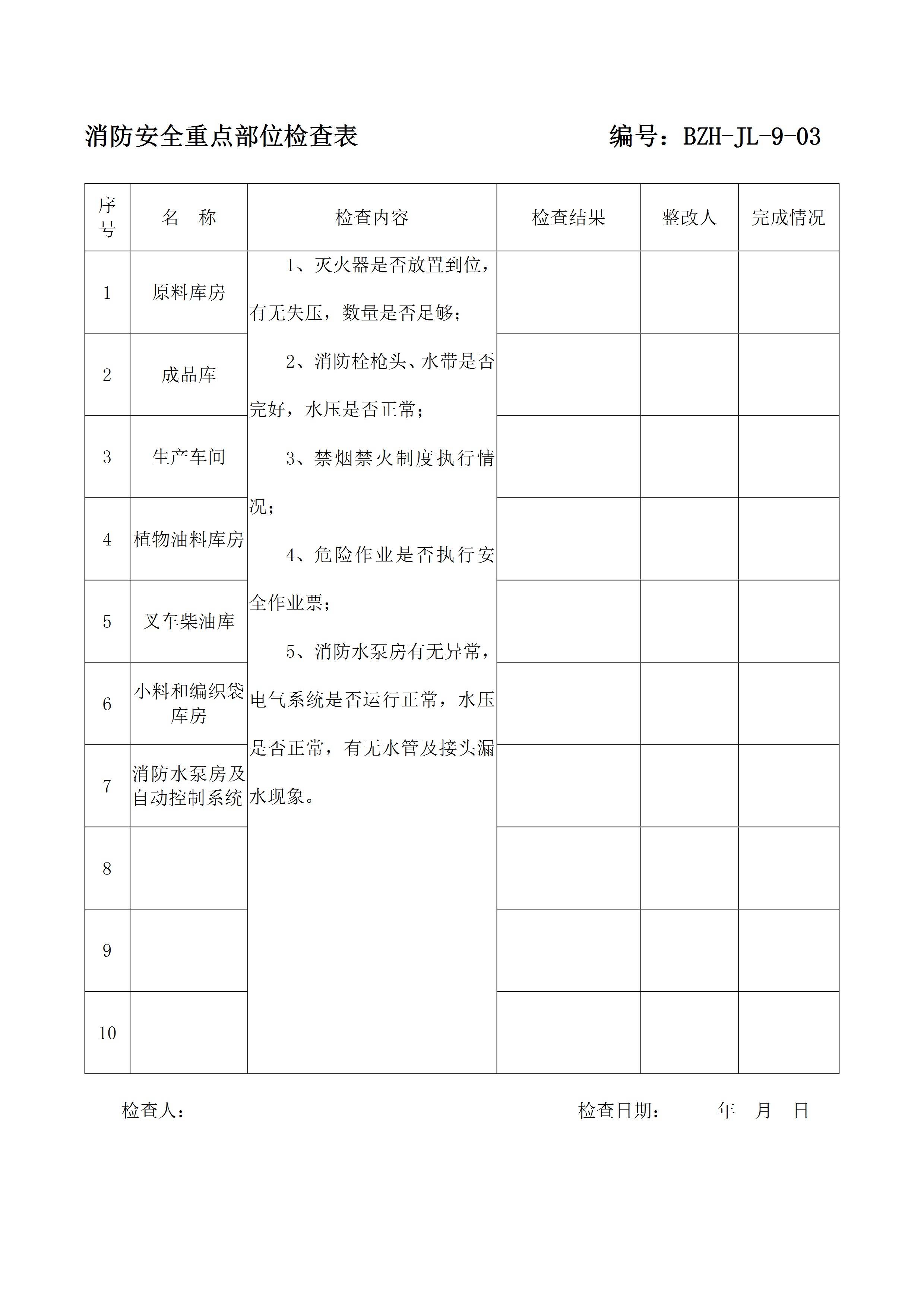 / 消防安全重点部位检查表[文档版]