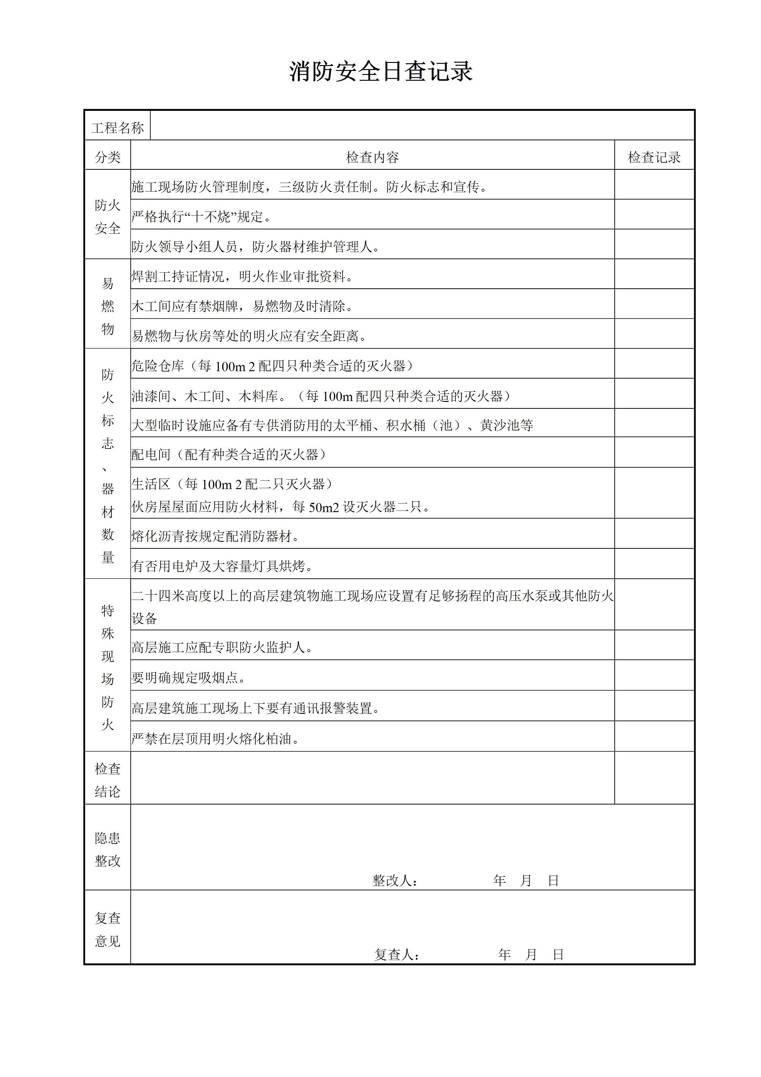 / 消防安全日查记录[文档版]