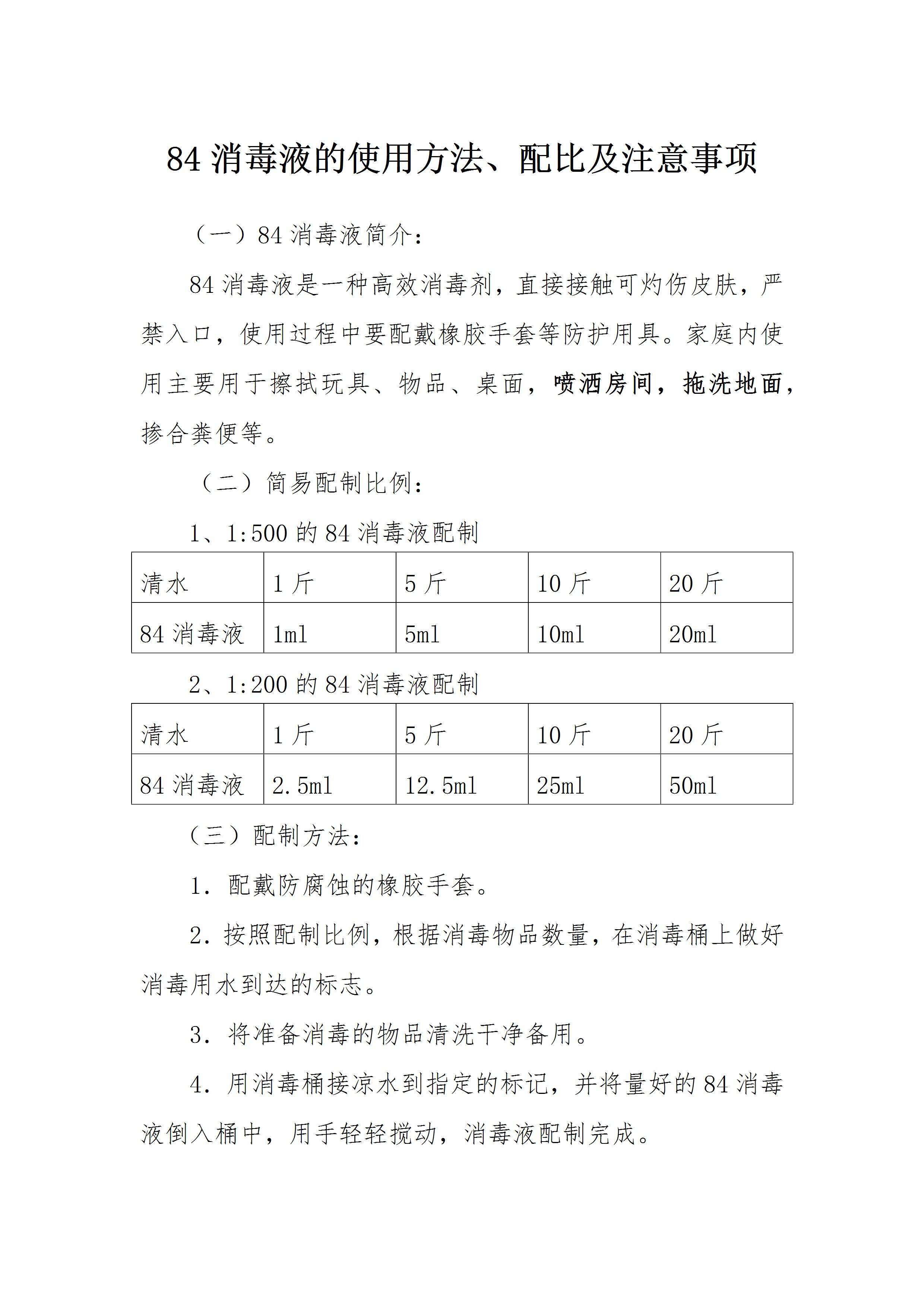 / 消毒液的使用方法,配比及注意事项[文档版]