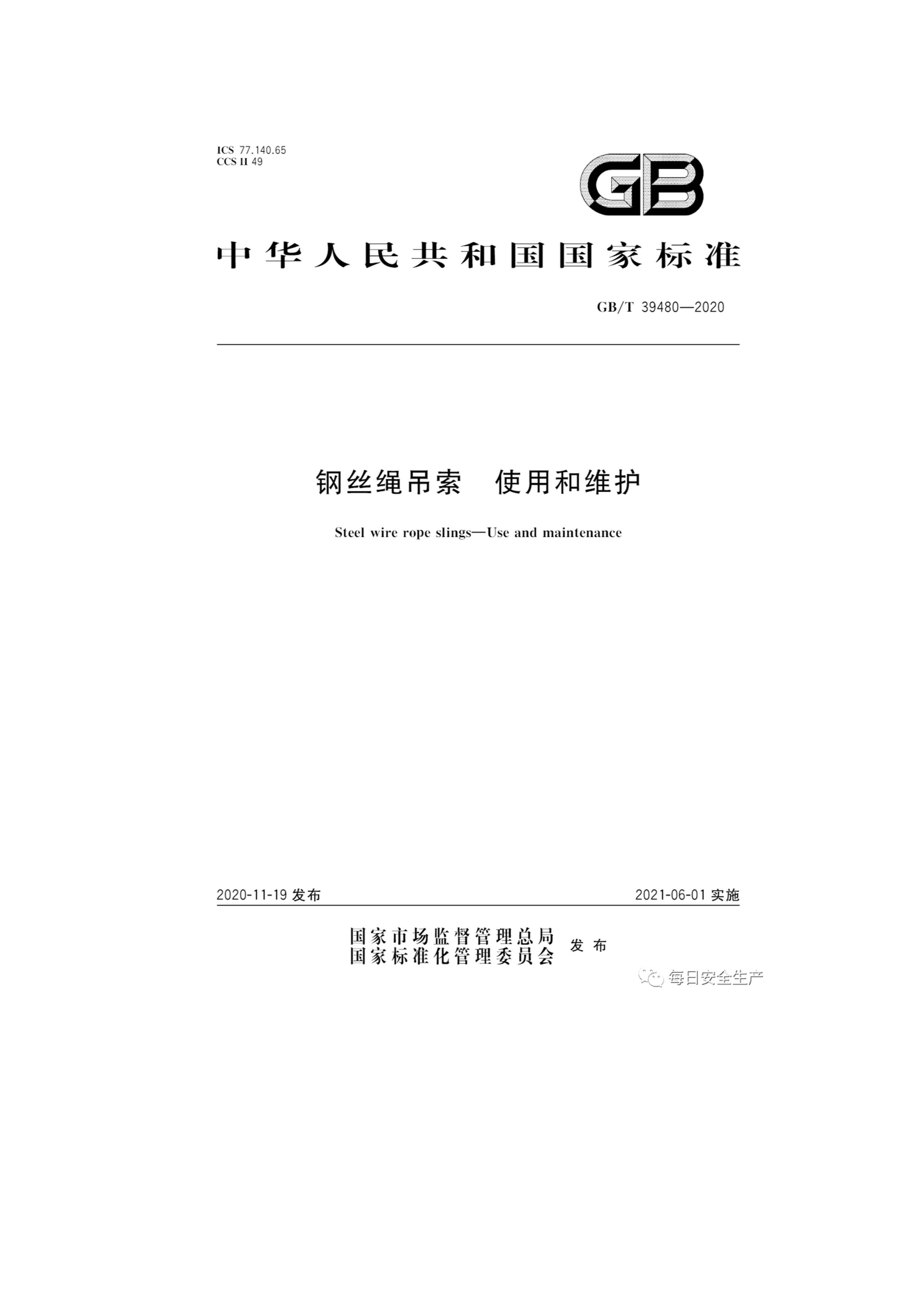 / 新标发布GBT 394802020钢丝绳吊索 使用和维护[文档版]