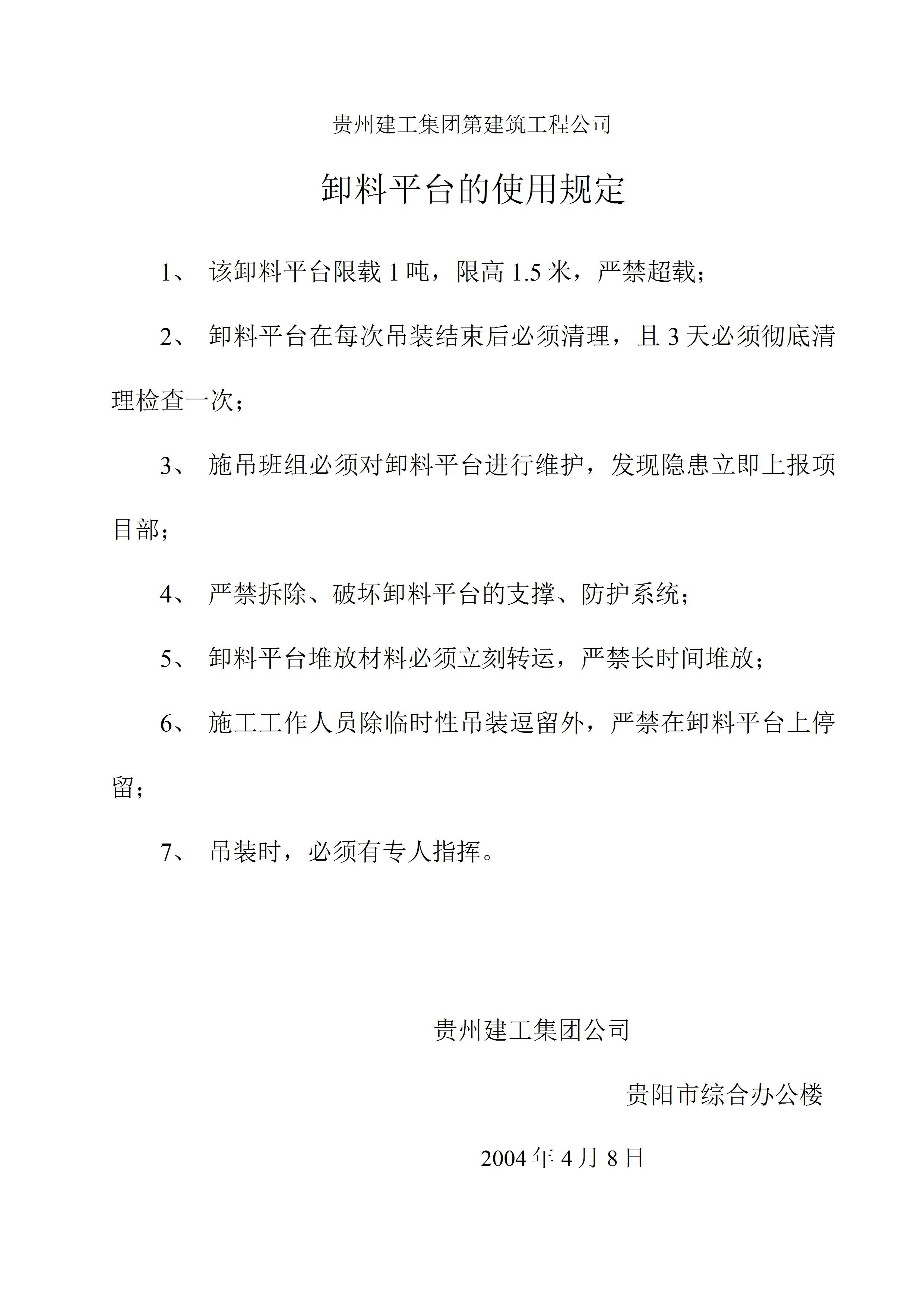 / 卸料平台的使用规定[文档版]