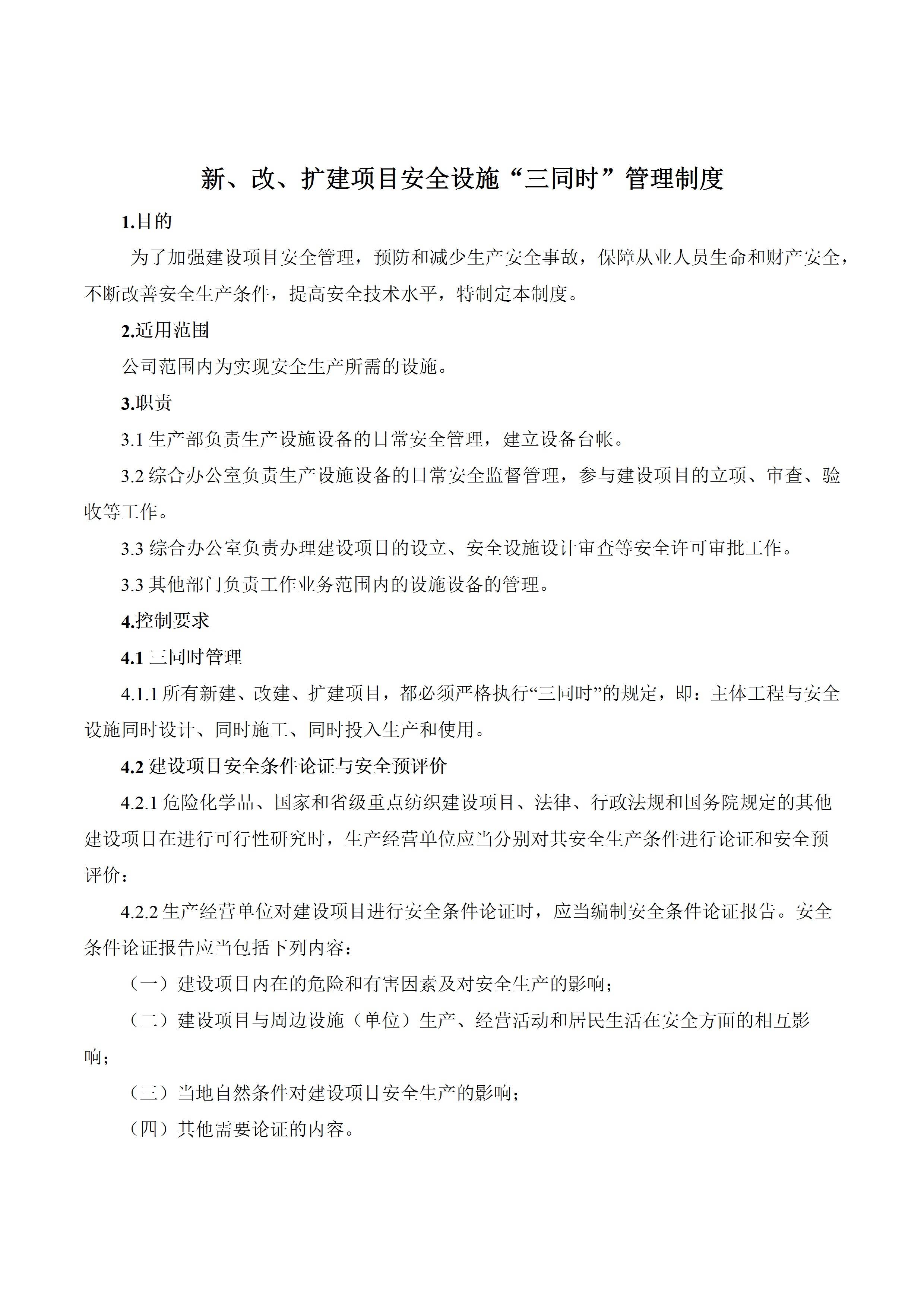 / 新,改,扩建项目安全设施三同时管理制度[文档版]