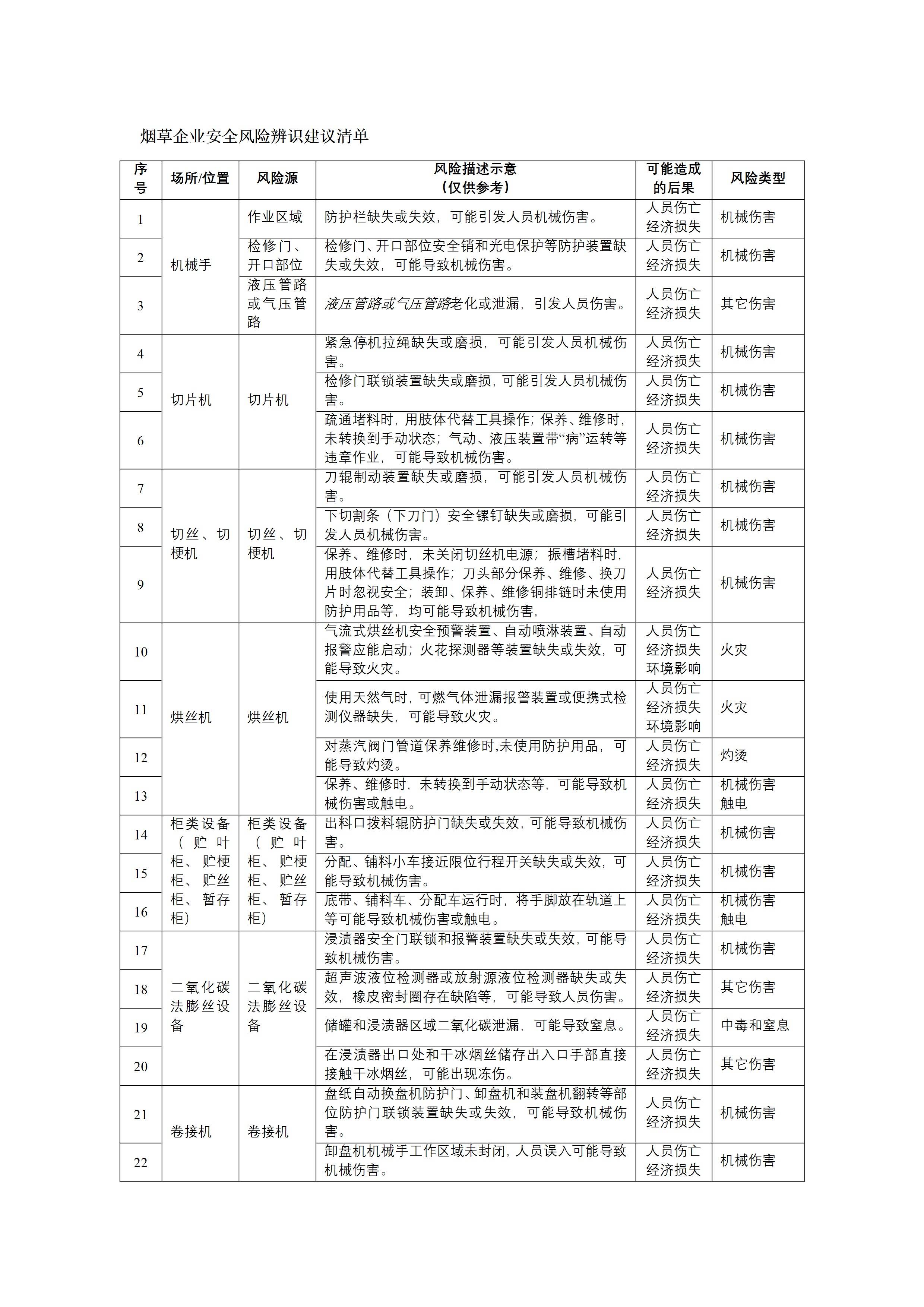 烟草企业安全风险辨识分级管控建议清单[文档版]