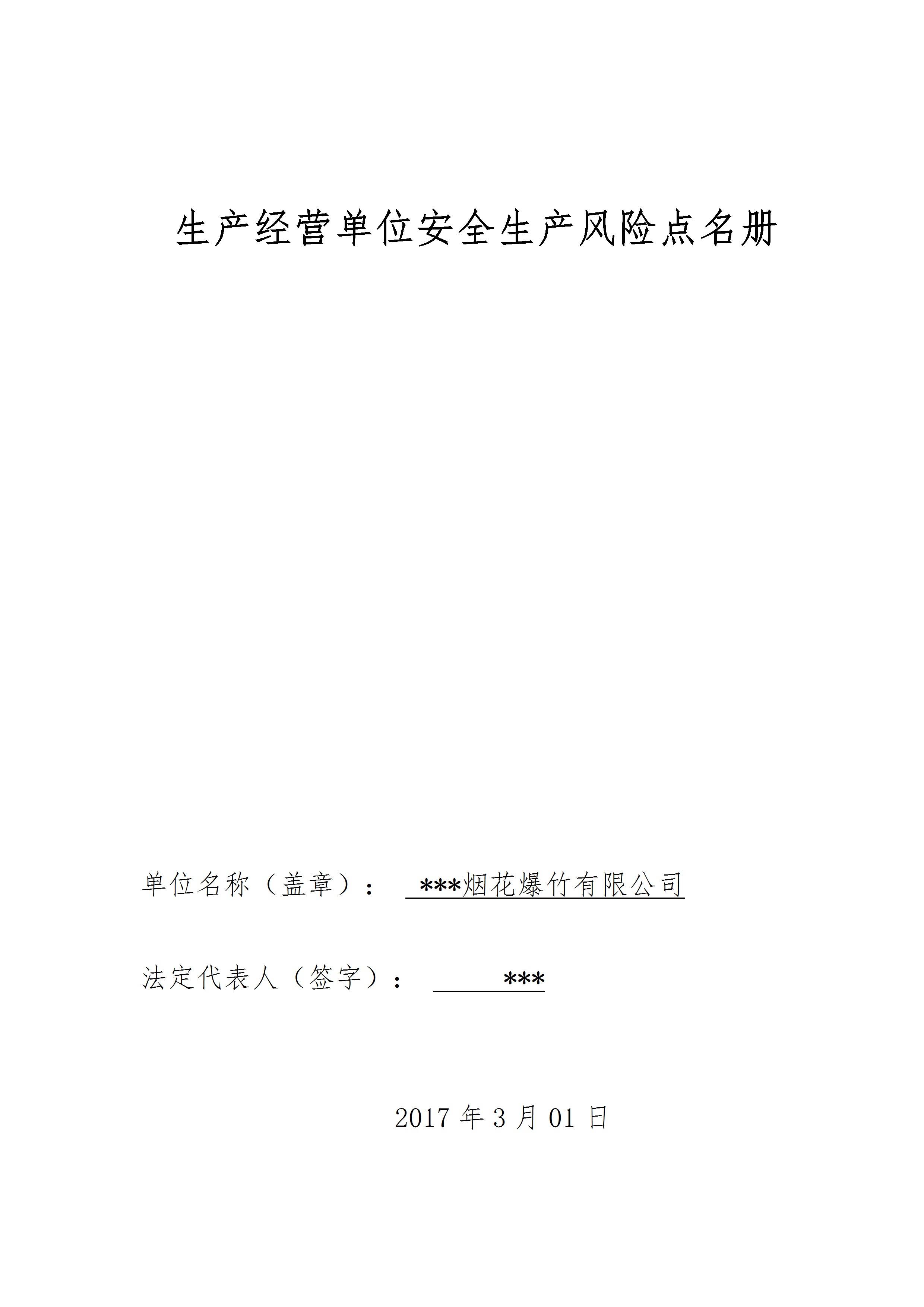 / 烟花爆竹有限公司风险点名册[文档版]