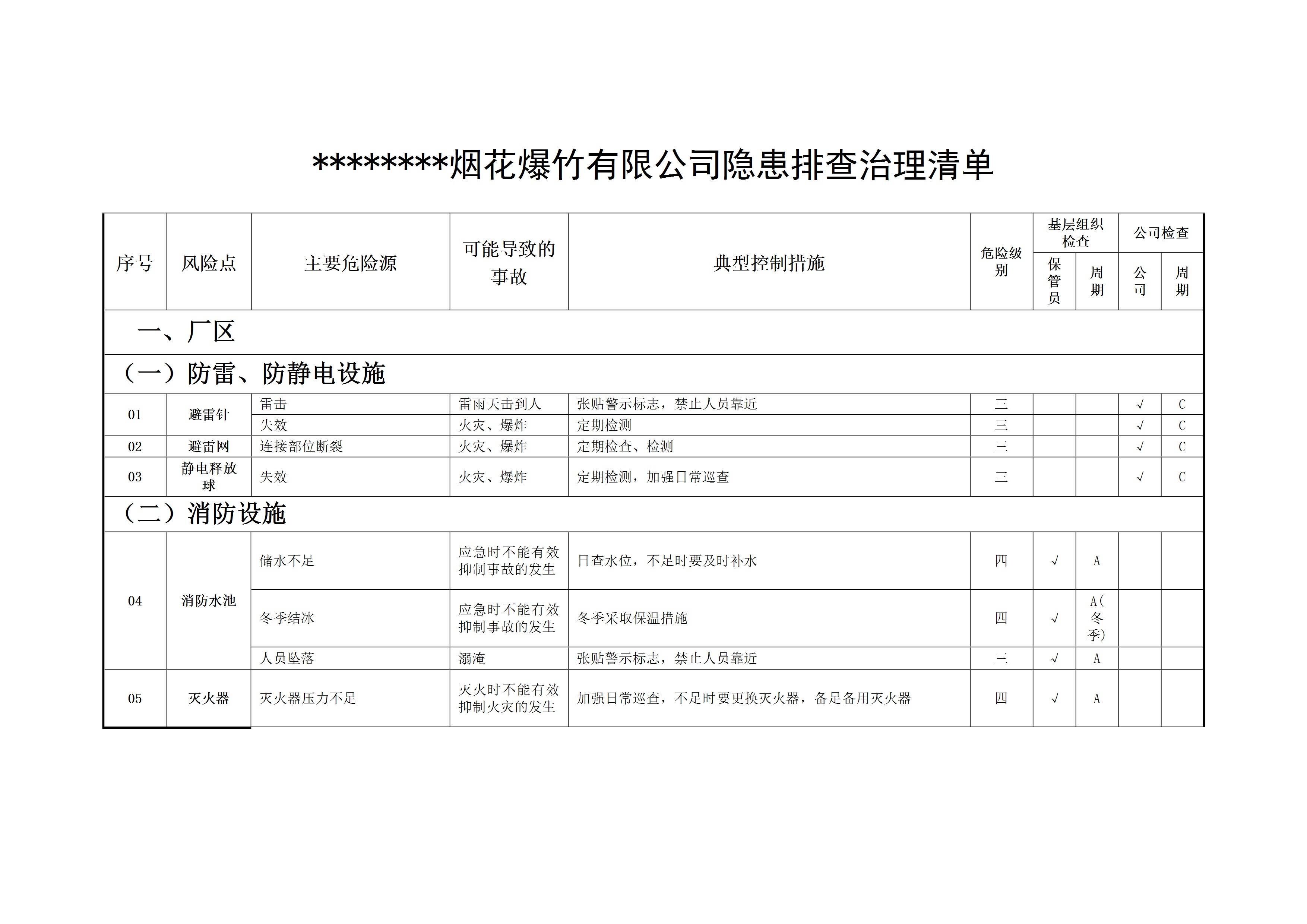 / 烟花隐患排查治理清单[文档版]