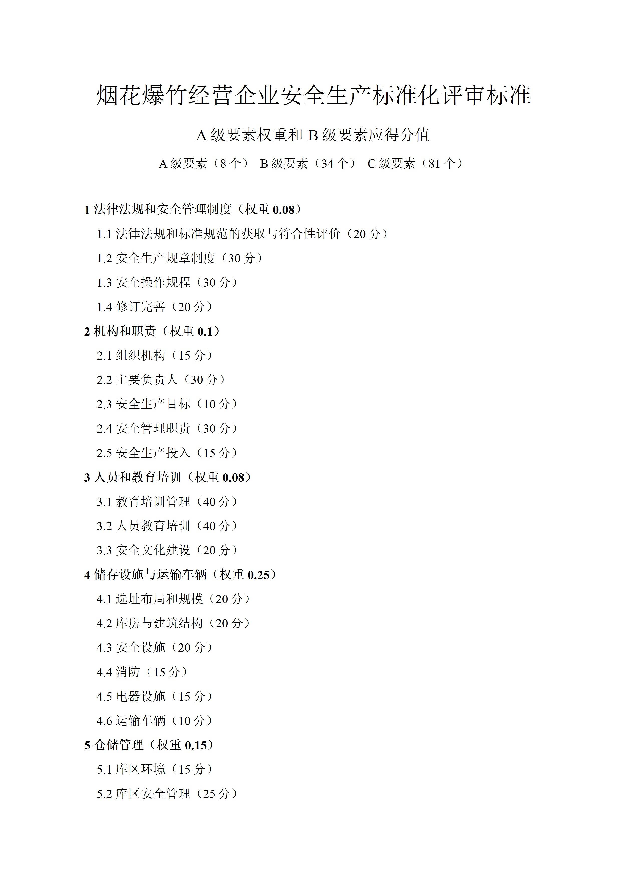 / 烟花爆竹经营企业安全生产标准化评审标准[文档版]