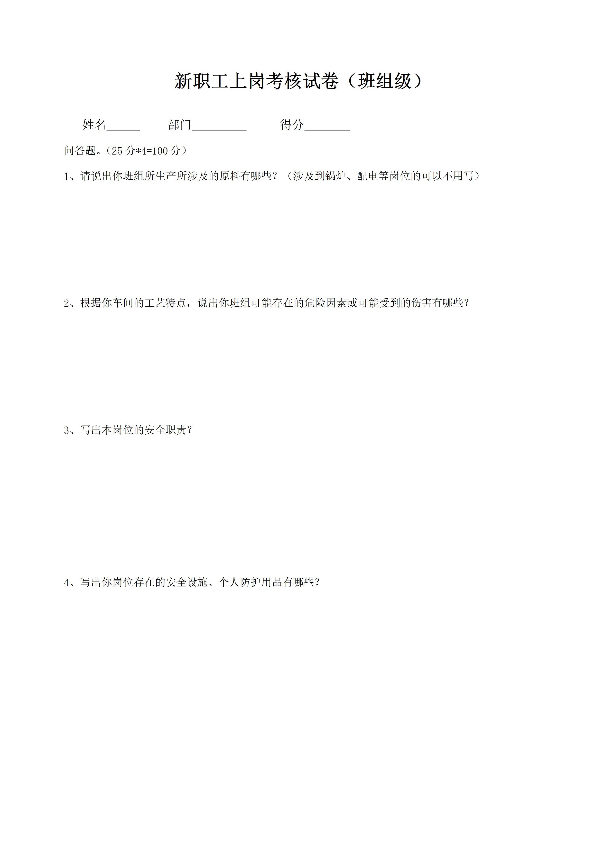 新进厂职工上岗考核试卷班组级[文档版]