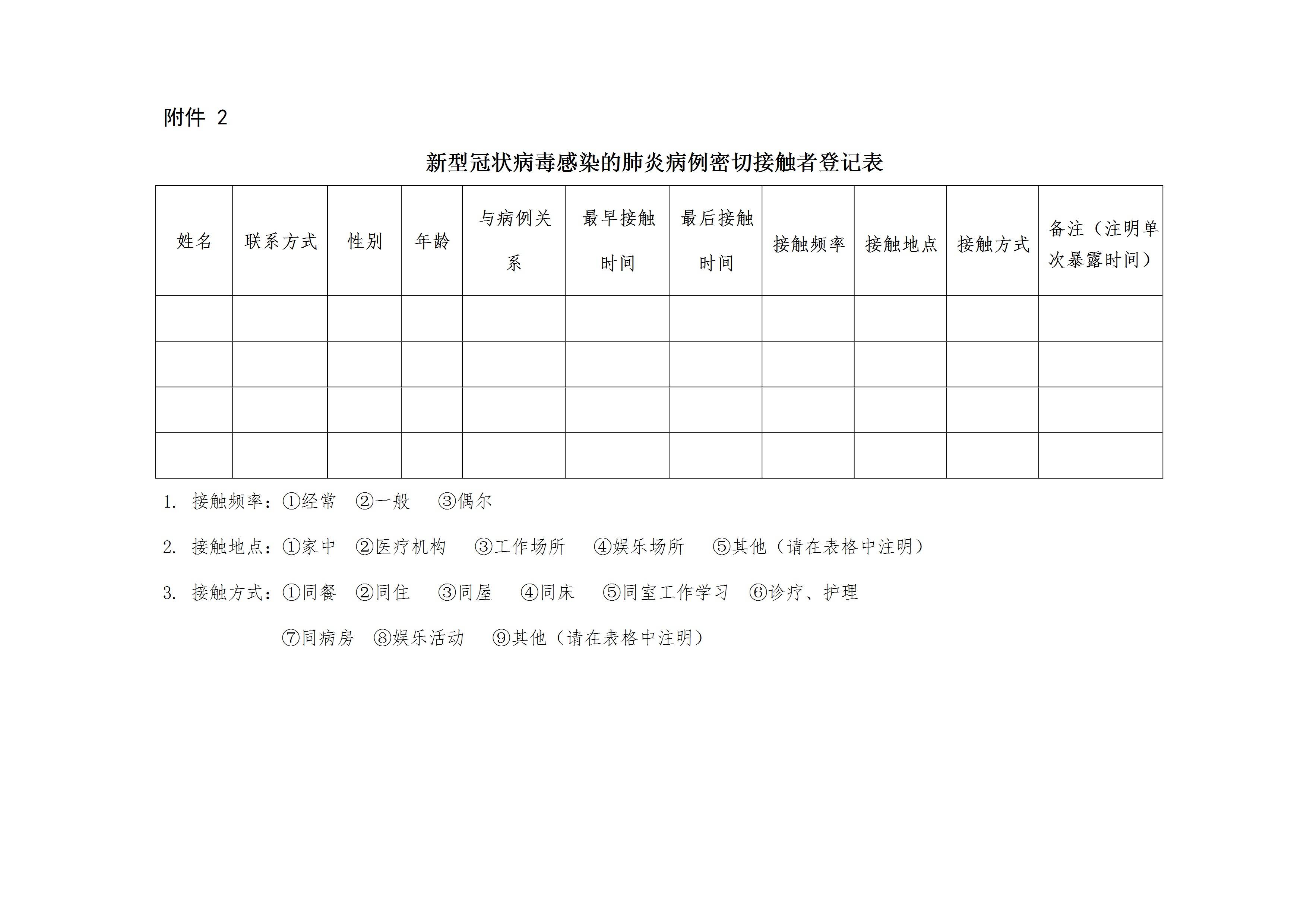 新型冠状病毒感染的肺炎病例密切接触者登记表观察表[文档版]