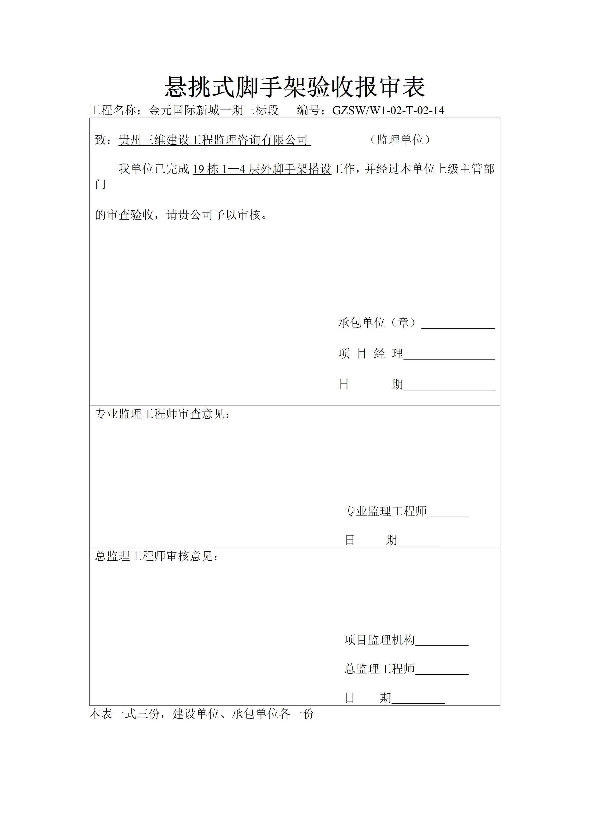 / 悬挑式脚手架验收报审表[文档版]