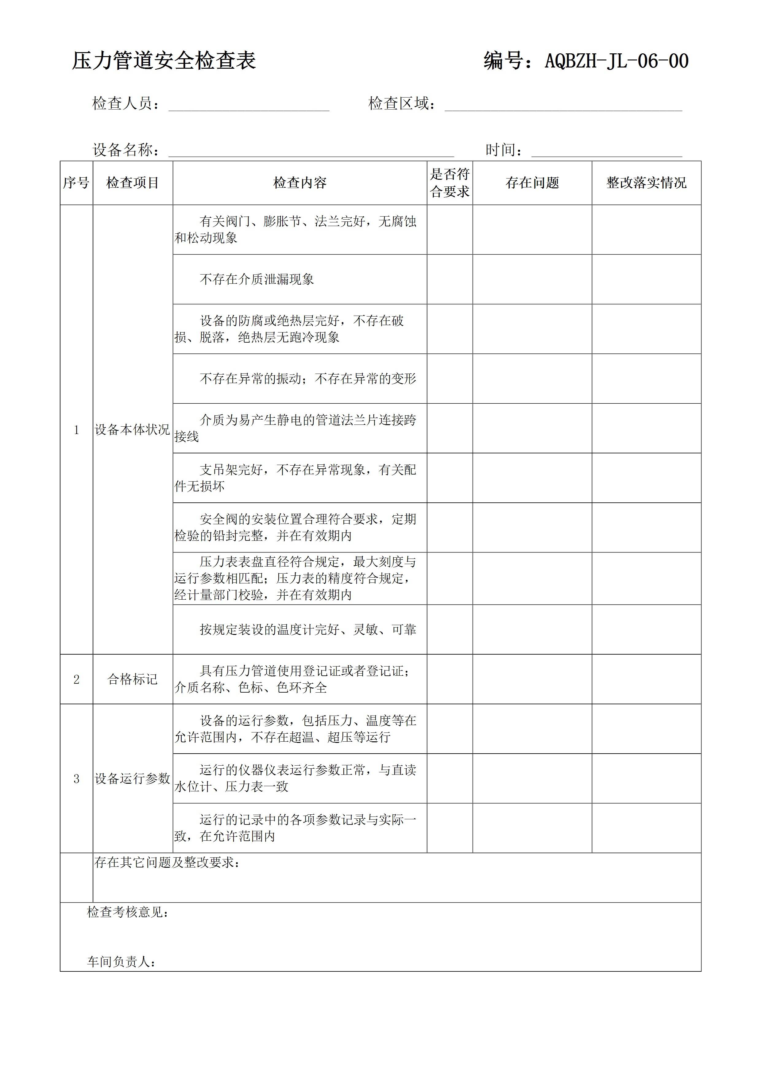 压力管道安全检查表[文档版]