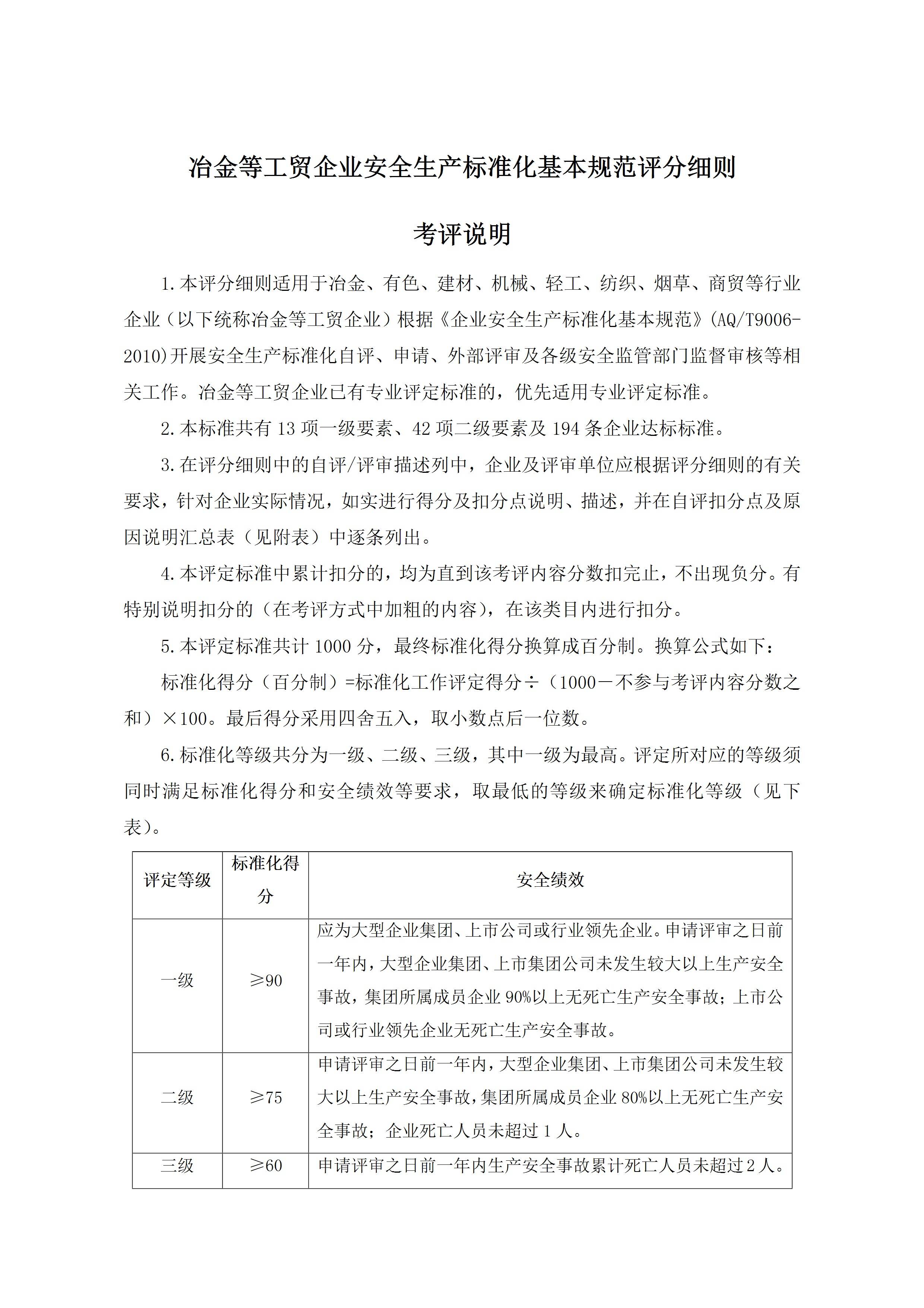 / 冶金等工贸企业安全生产标准化基本规范评分细则13要素[文档版]