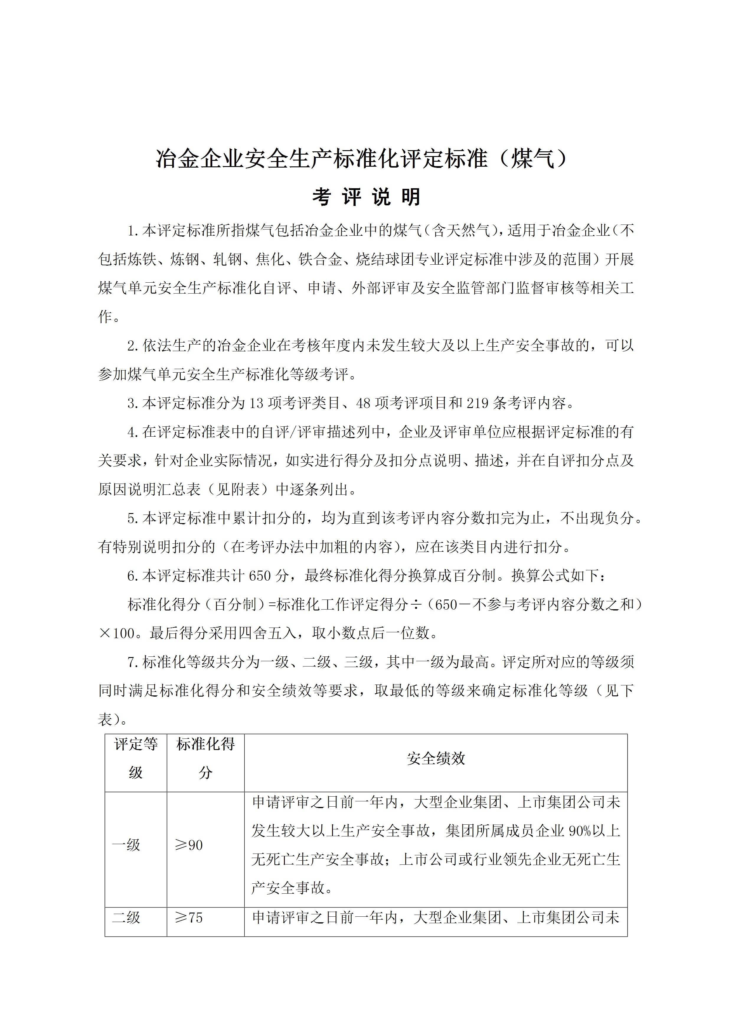 / 冶金煤气企业安全生产标准化评定标准[文档版]