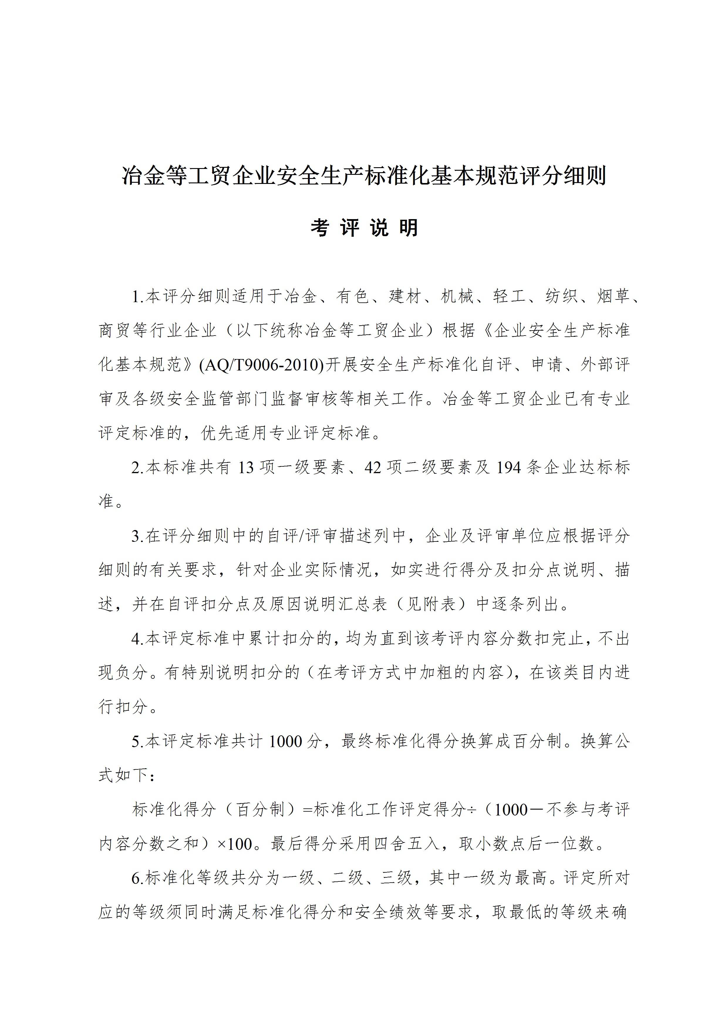 冶金等工贸企业安全生产标准化基本规范评分细则[文档版]