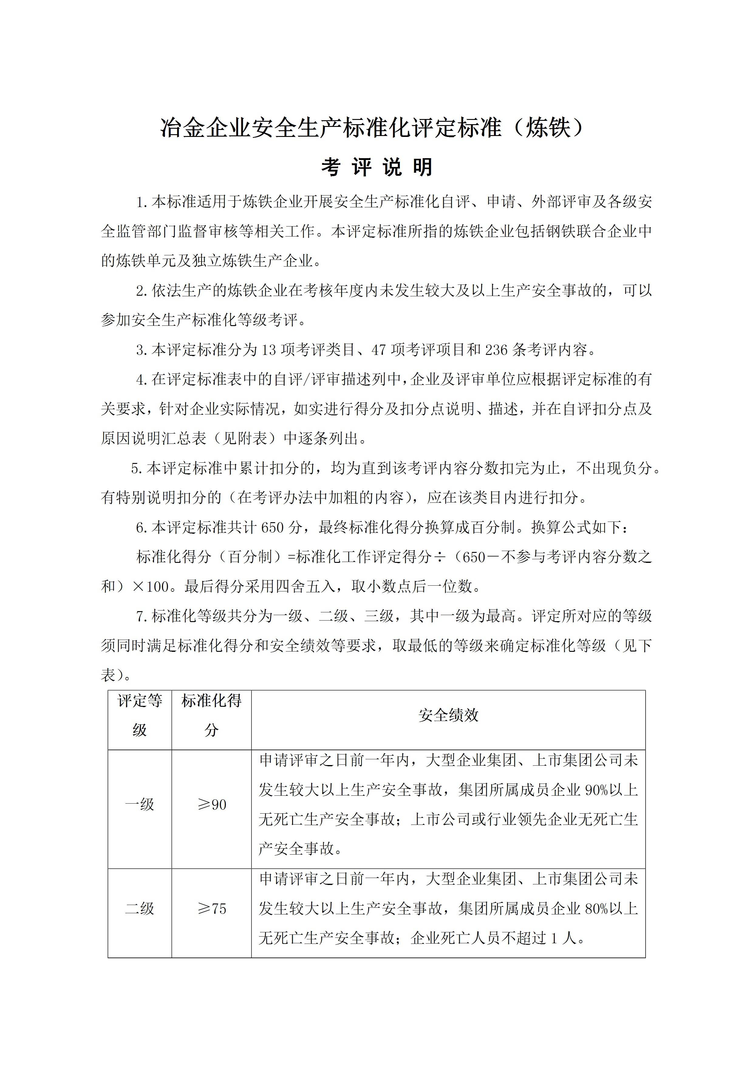 / 冶金企业安全生产标准化评定标准炼铁[文档版]