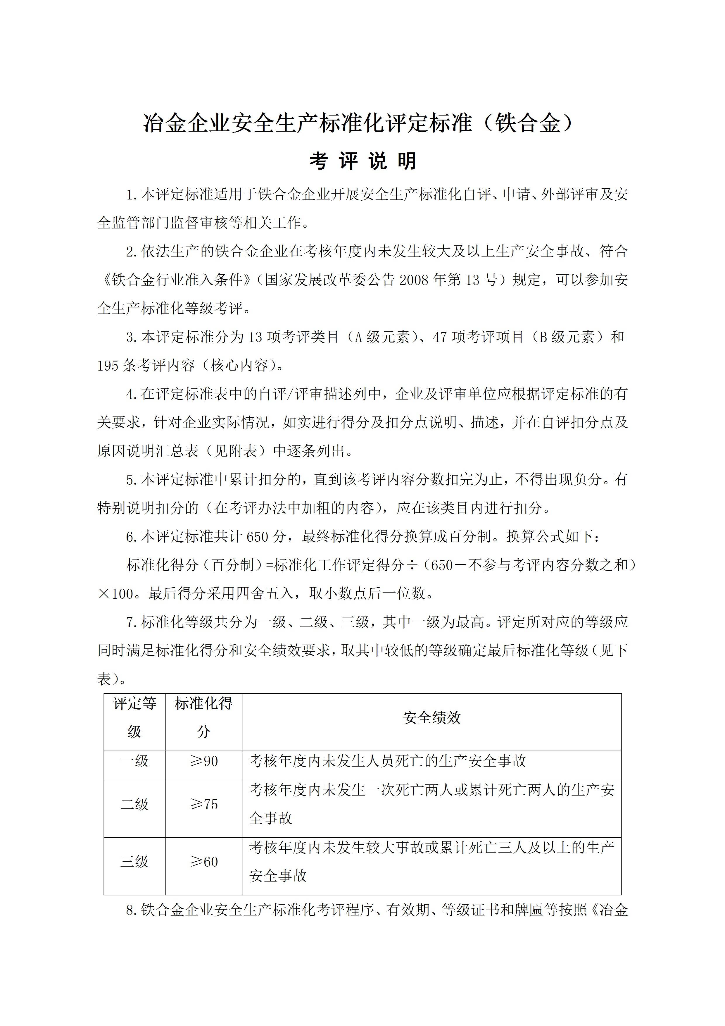 / 冶金企业安全生产标准化评定标准铁合金[文档版]