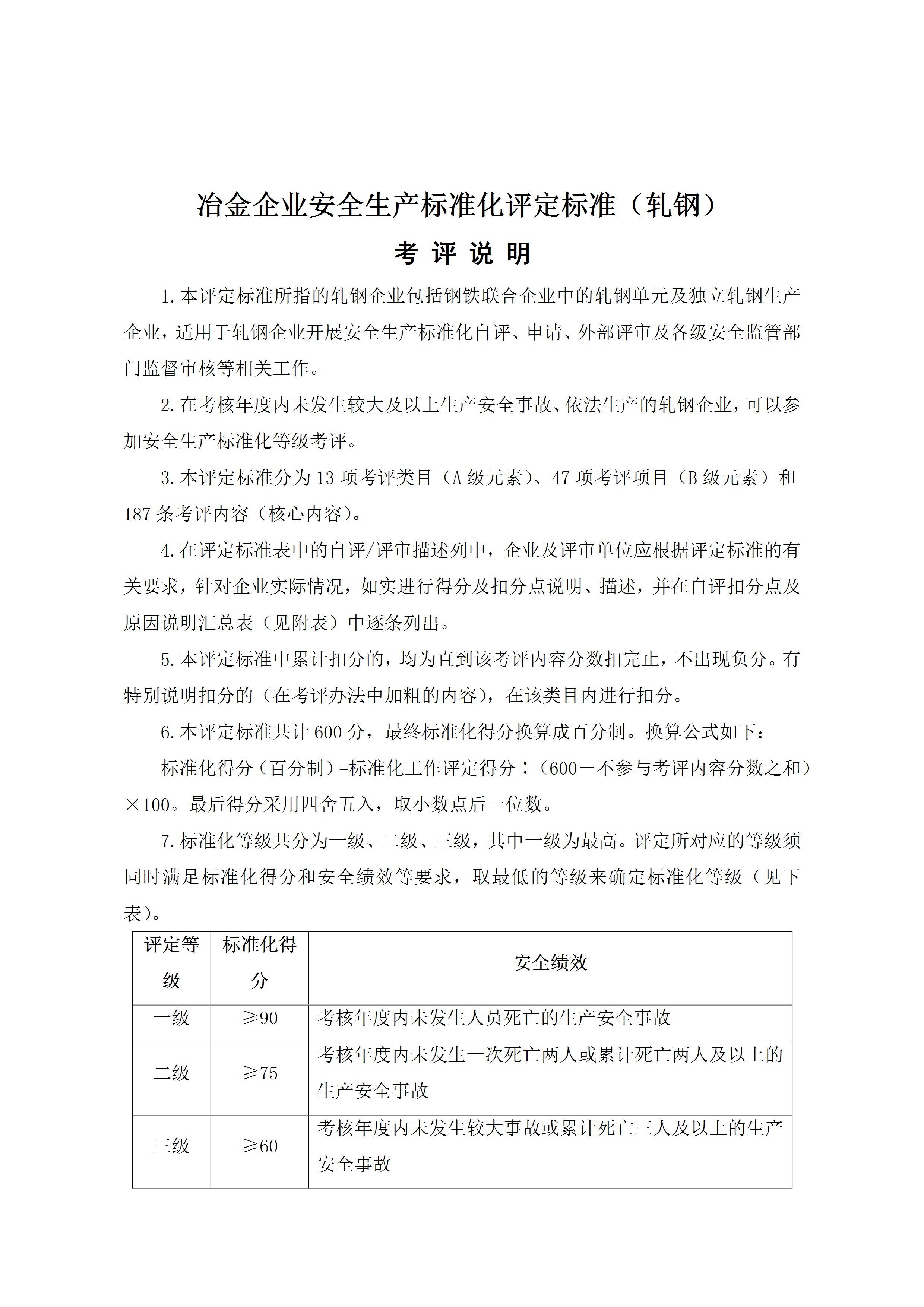 / 冶金企业安全生产标准化评定标准轧钢[文档版]
