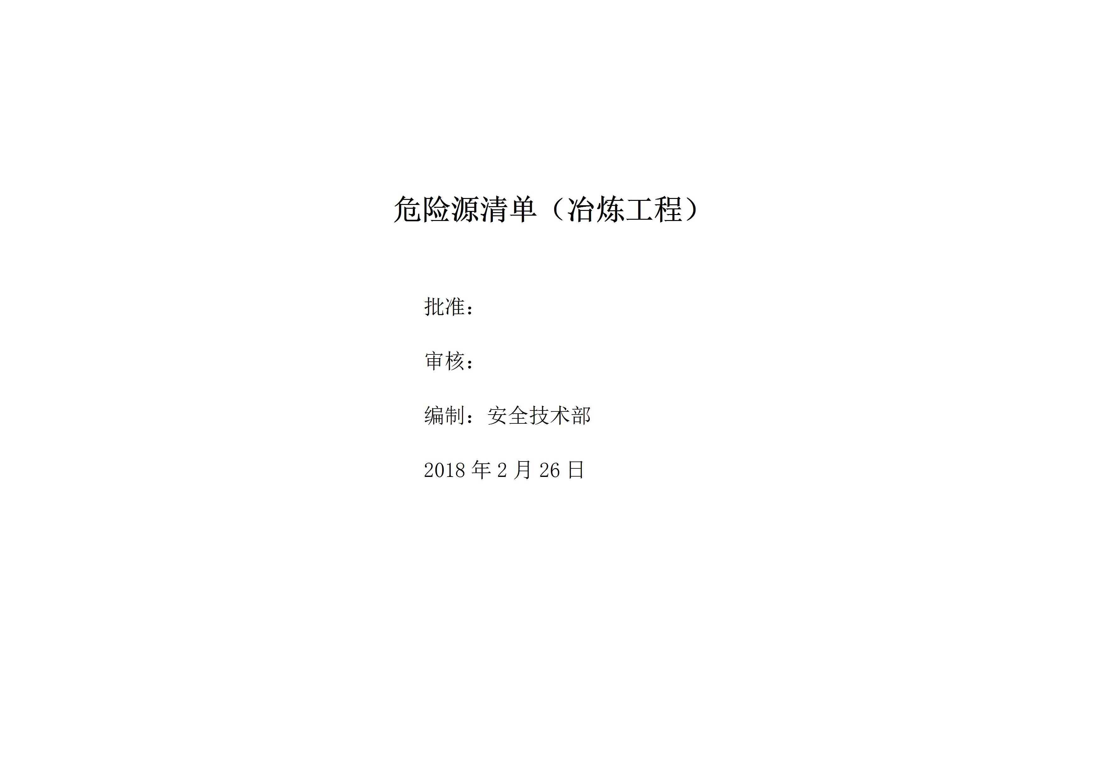 冶炼工程危险源因素识别清单冶炼工程[文档版]